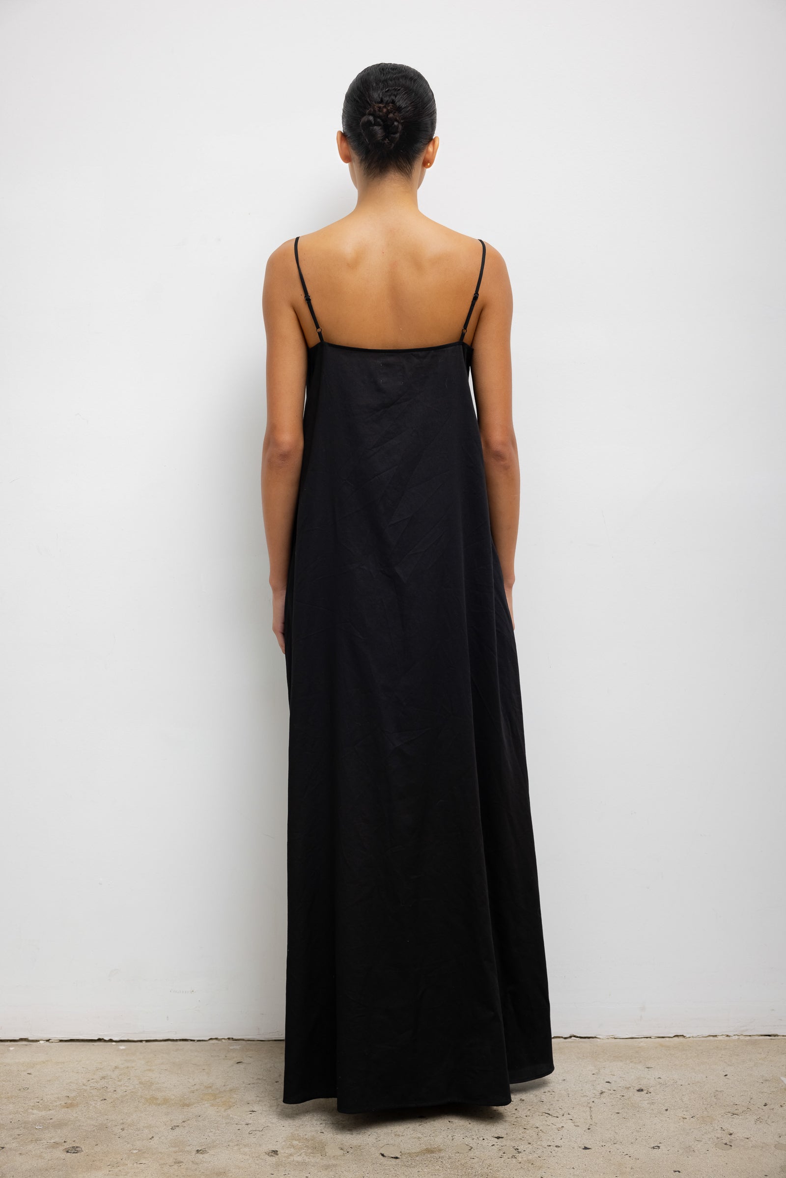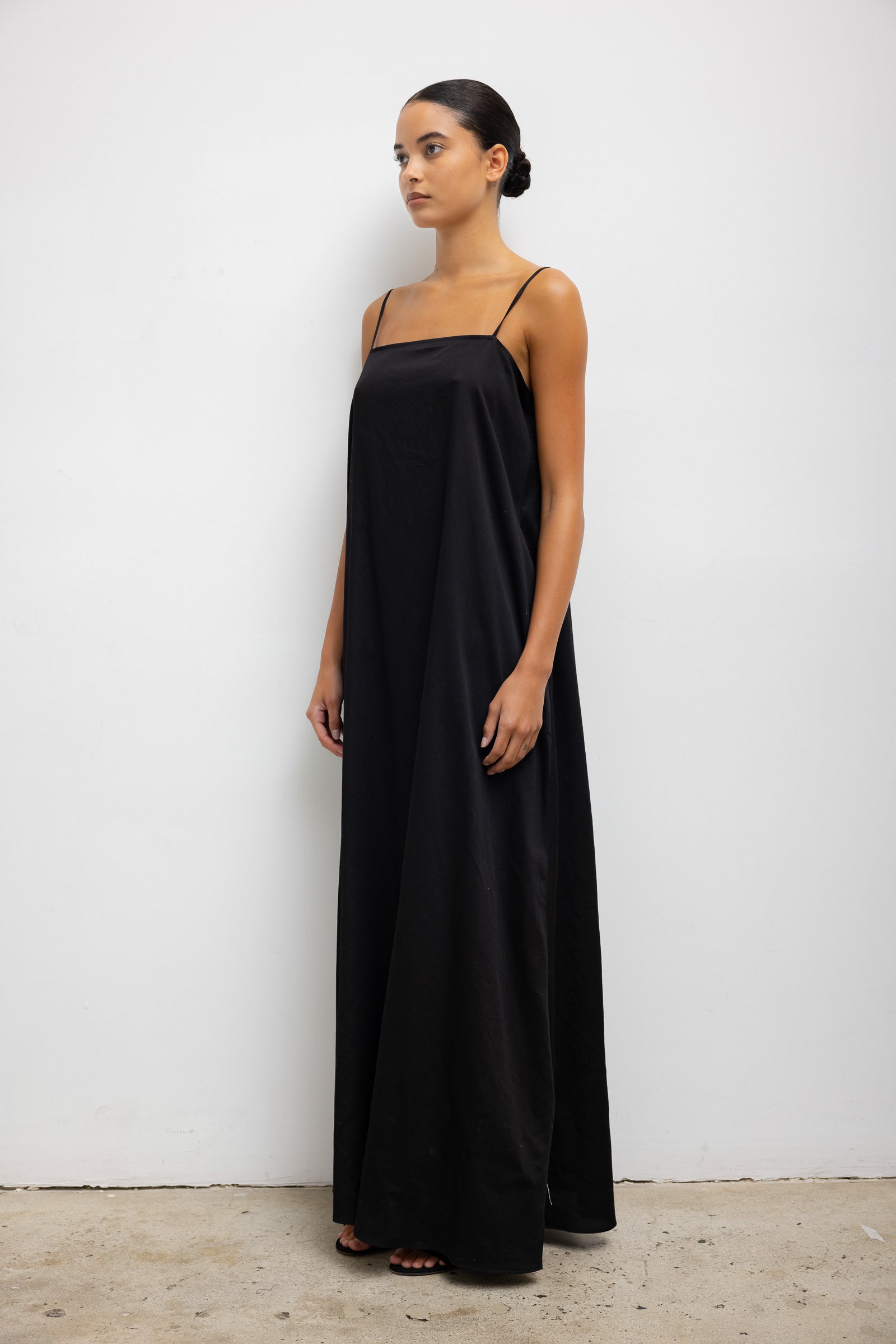 Cut in our bed sheet feel Yoko Cotton, The Yoko Maxi Dress features a straight neckline, adjustable spaghetti straps, and a sweeping maxi length.