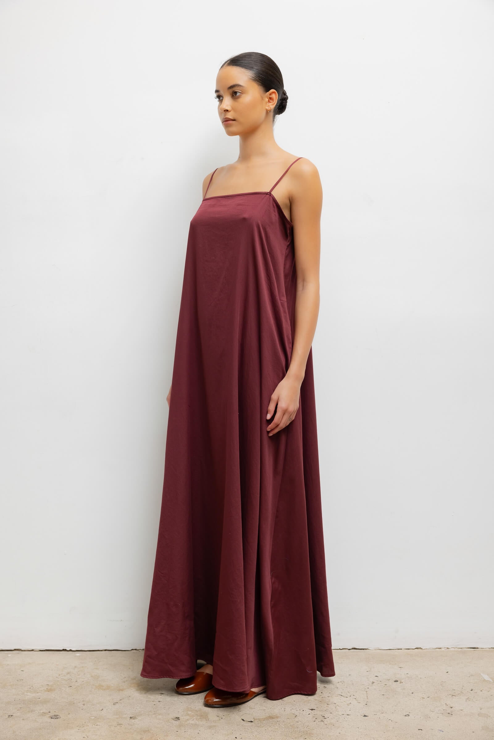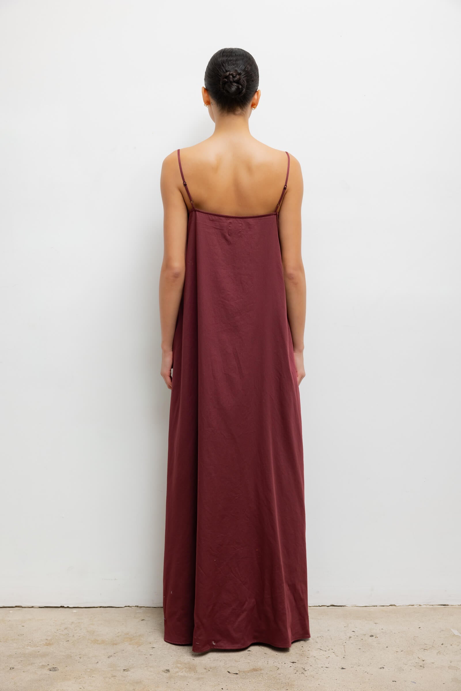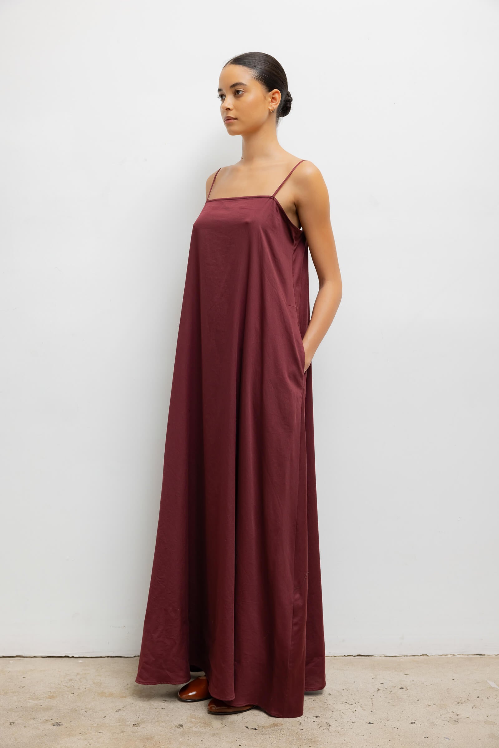 Cut in our bed sheet feel Yoko Cotton, The Yoko Maxi Dress features a straight neckline, adjustable spaghetti straps, and a sweeping maxi length.