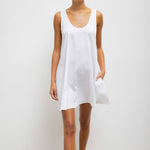 Cut in our bed sheet feel Yoko Cotton, The Yoko Mini Tank Dress features a wide scoop neckline, mid-width straps, and a perfectly draped mini length. We're wearing this from from bed to beach to bar.