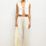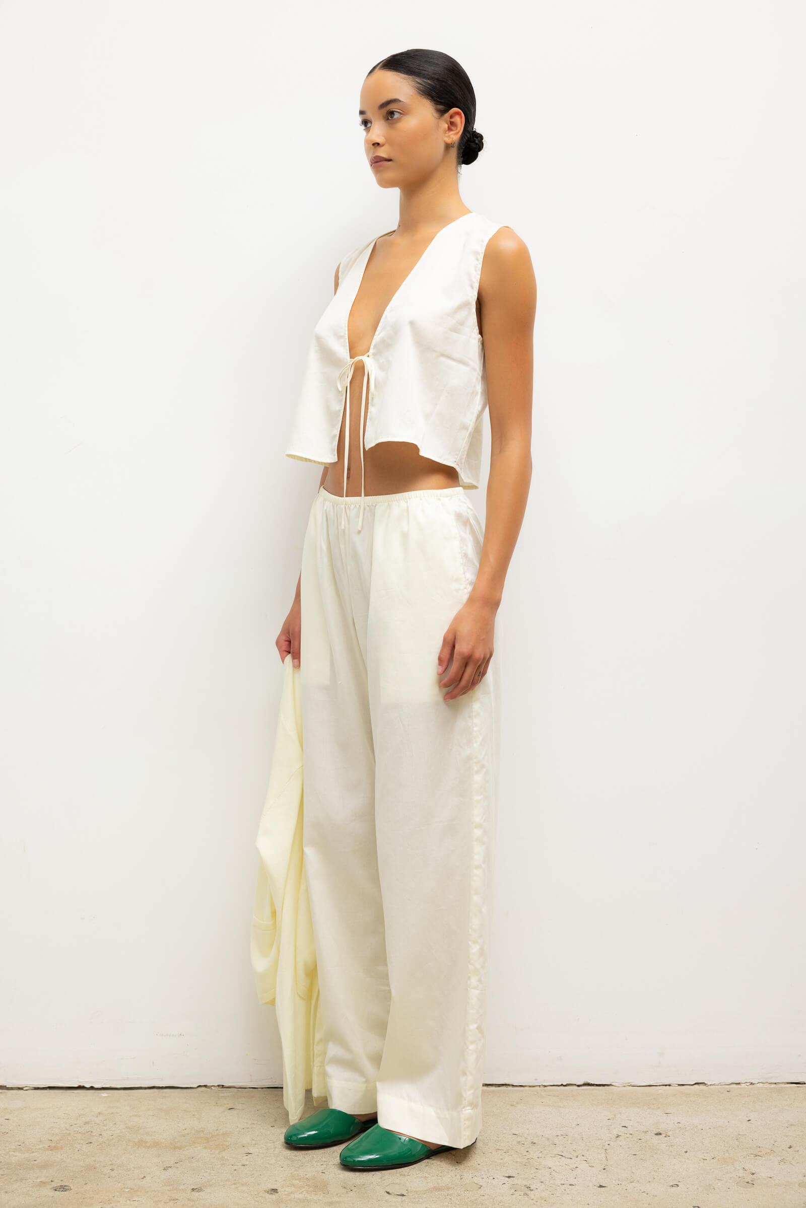 Cut in our bed sheet feel Yoko Cotton, The Yoko Pocket Pant is a pull-on style pant, featuring a relaxed leg silhouette and side slit pockets. Make it a matching set with any Yoko top. As seen on Kendall Jenner.