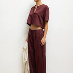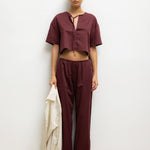 Crafted in our bed sheet feel Yoko Cotton, The Yoko Short Sleeve Tie Top features a deep V neckline, cropped length and a delicate tie closure at front. Complete the set with any Yoko bottom.