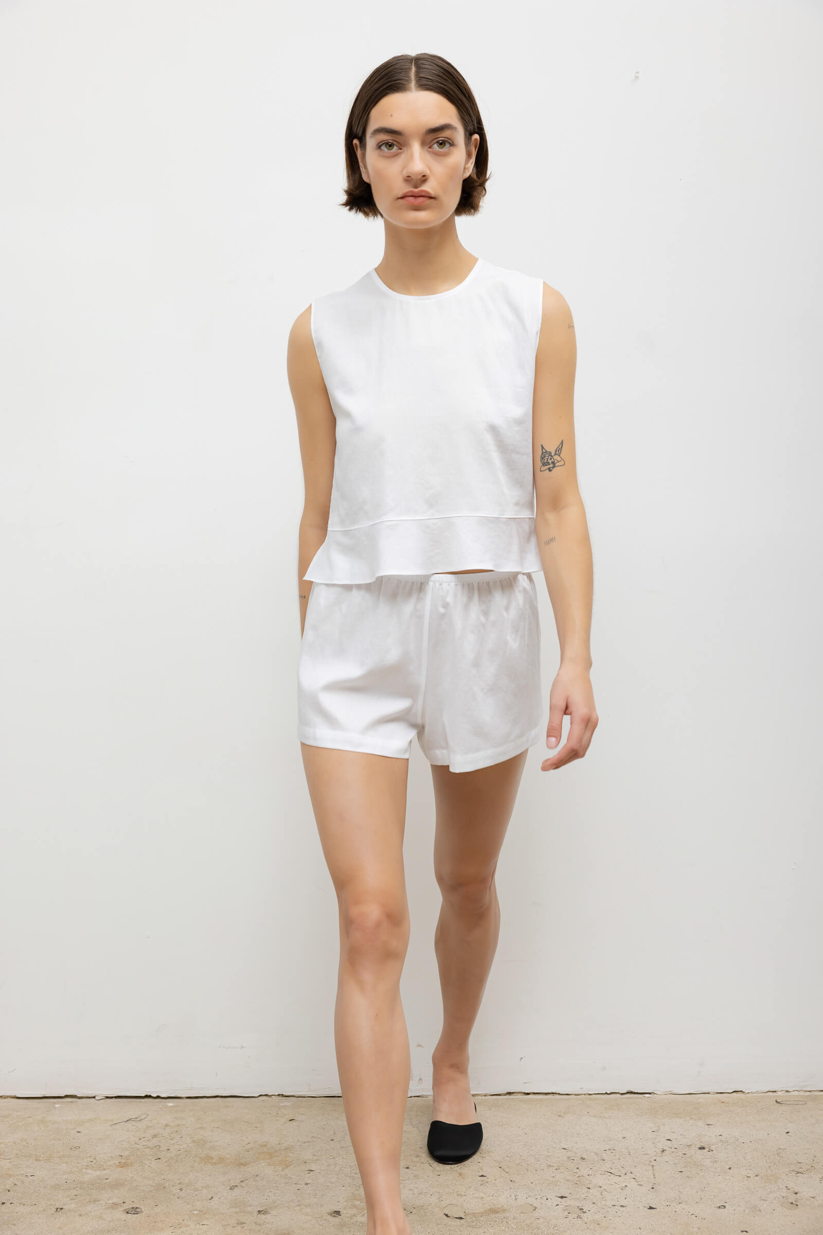 Cut in our bed sheet feel Yoko Cotton, The Yoko Summer Short features a softly gathered elastic waistband and a perfectly mini short length. From bed to beach - make these a matching set with any Yoko top.
