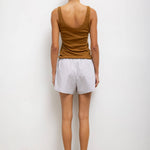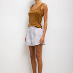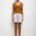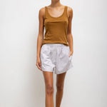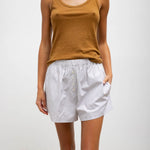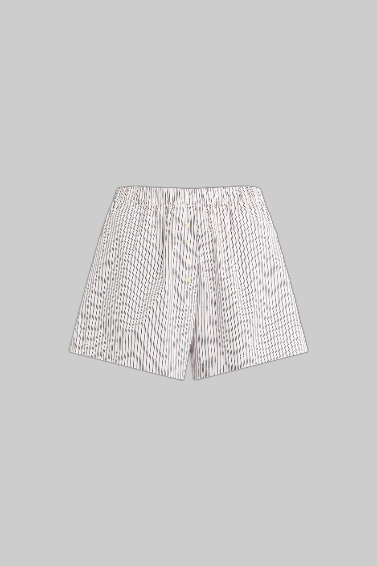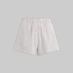 Cut in our striped Yoshi Cotton Twill, The Yoshi Boxer Short is our feminine take on a classic mens' sleepwear style, featuring everyday wear-minded details like a cinched waistband, A line silhouette, and side slit pockets.