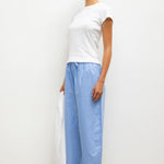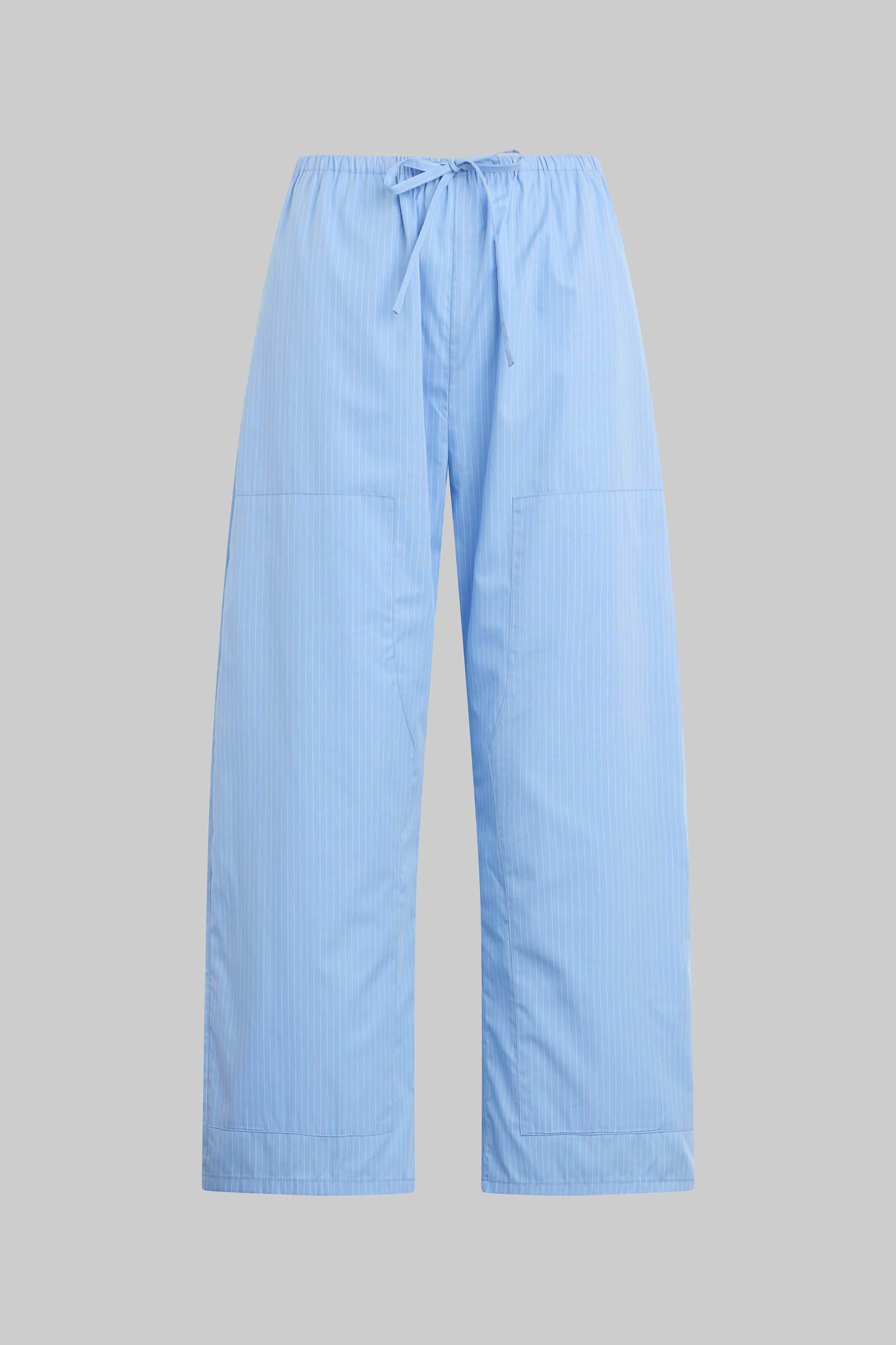 Cut in our striped Yoshi Cotton Twill, The Yoshi Carpenter Pant is a classic utility inspired trouser. This pull-on style pant features a baggy leg silhouette that hits at the ankle, with topstitched utility panels at front, an adjustable waistband, and patch pockets at back.