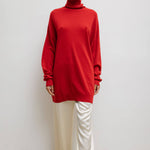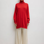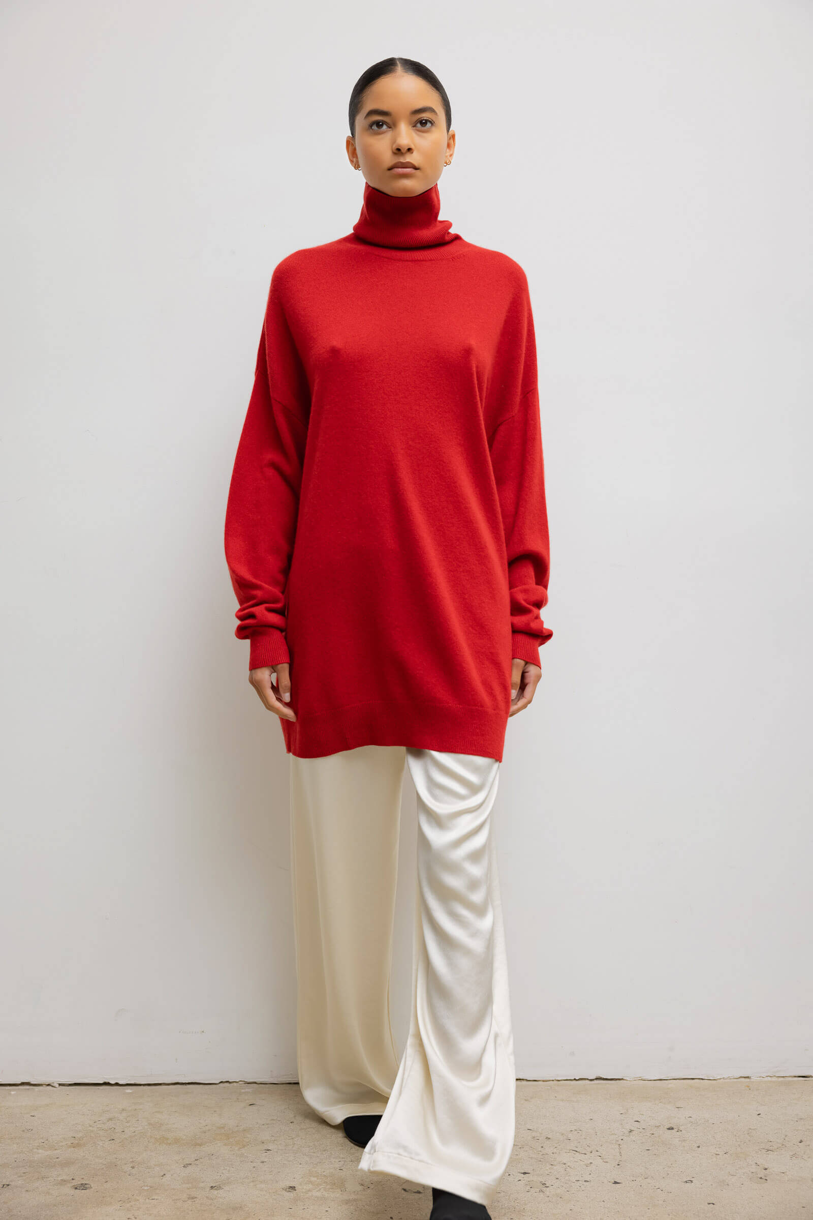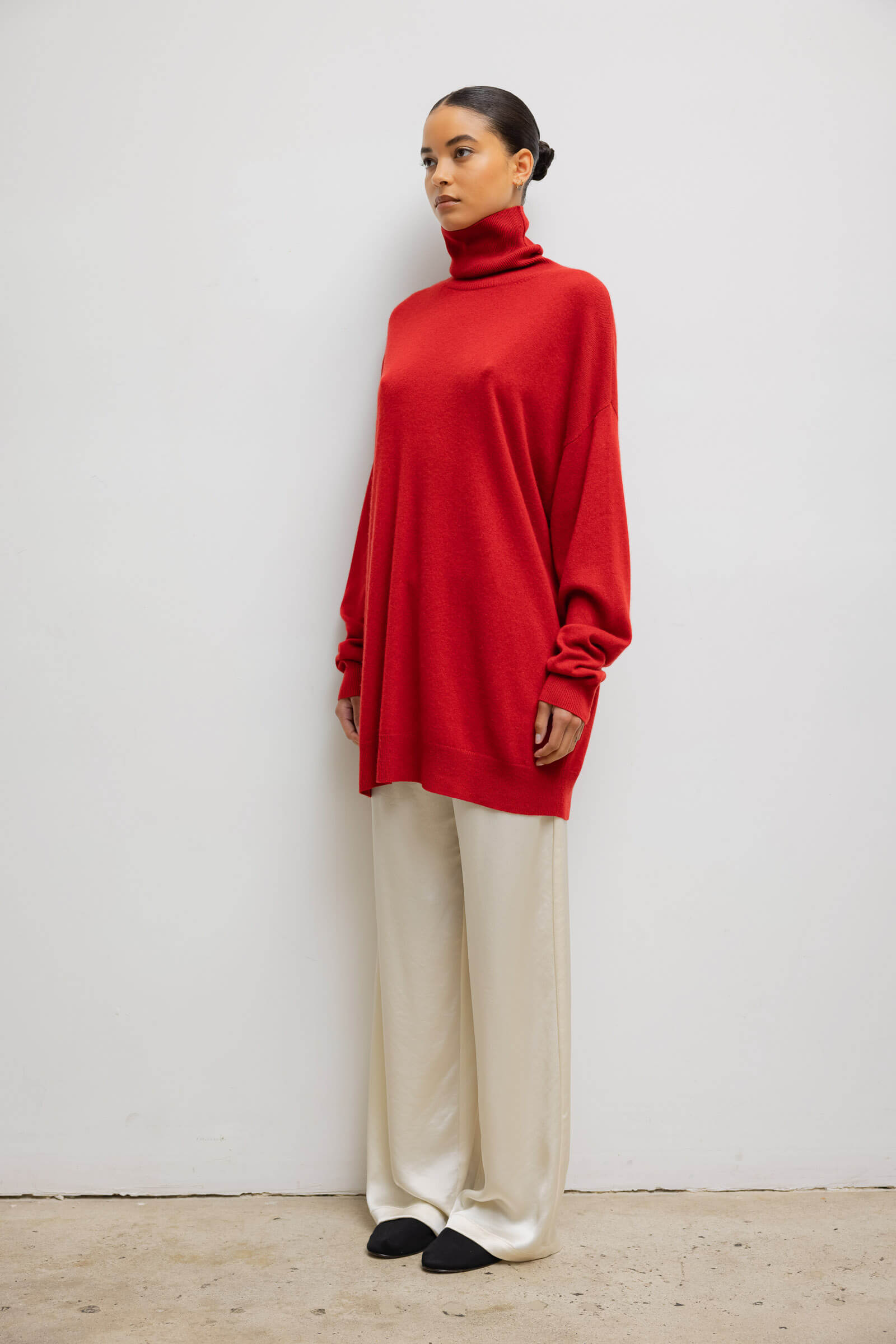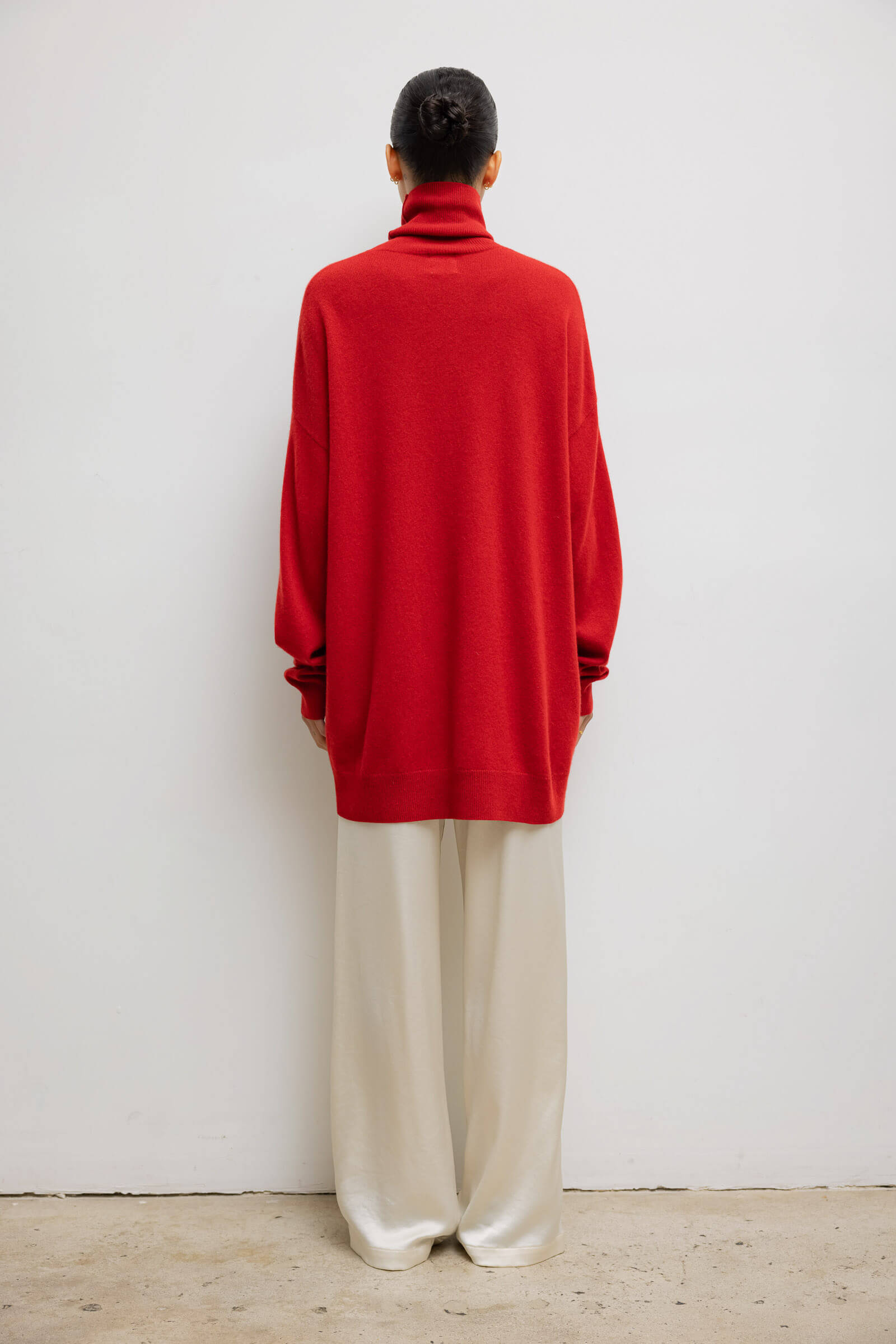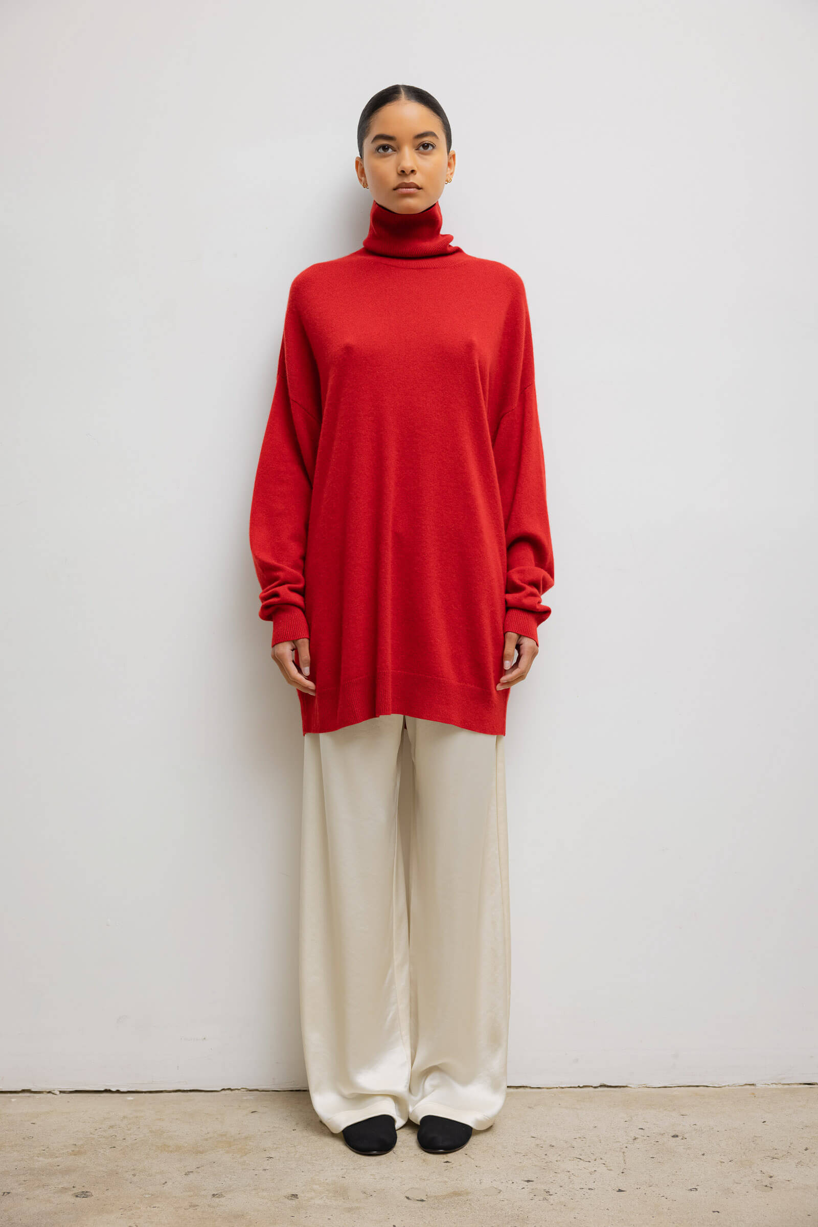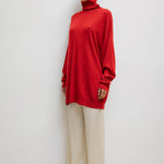 Knit in our plush Zoe Wool/Cashmere Knit, The Zoe Oversized Turtleneck is this season’s ultimate cozy over layer. Featuring a fold over turtleneck, full length sleeves, and a slightly elongated length.