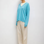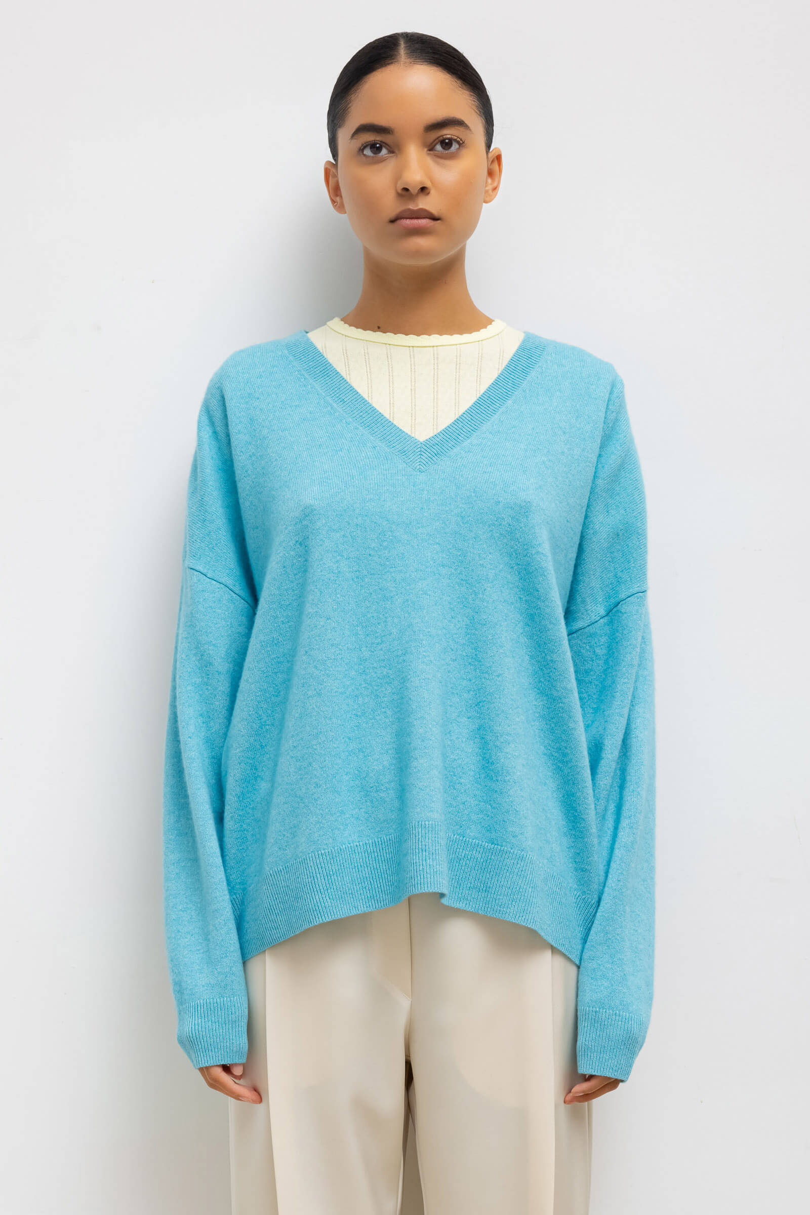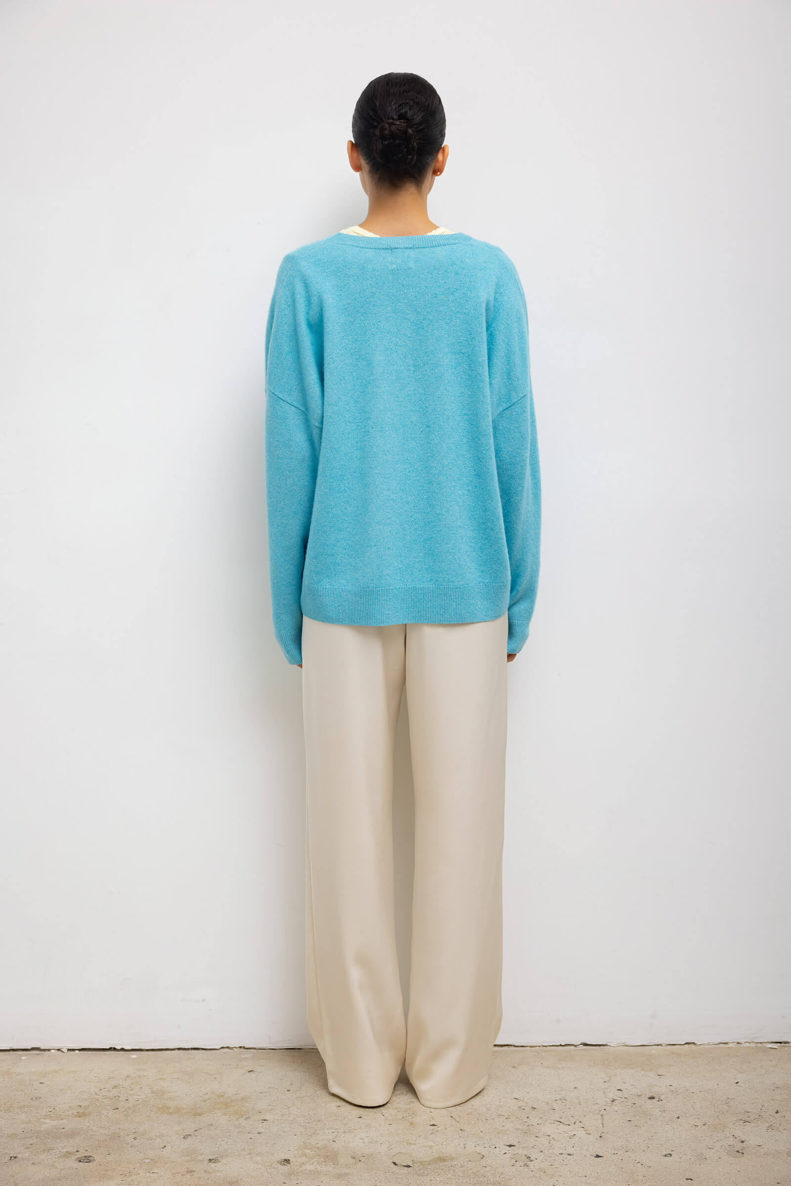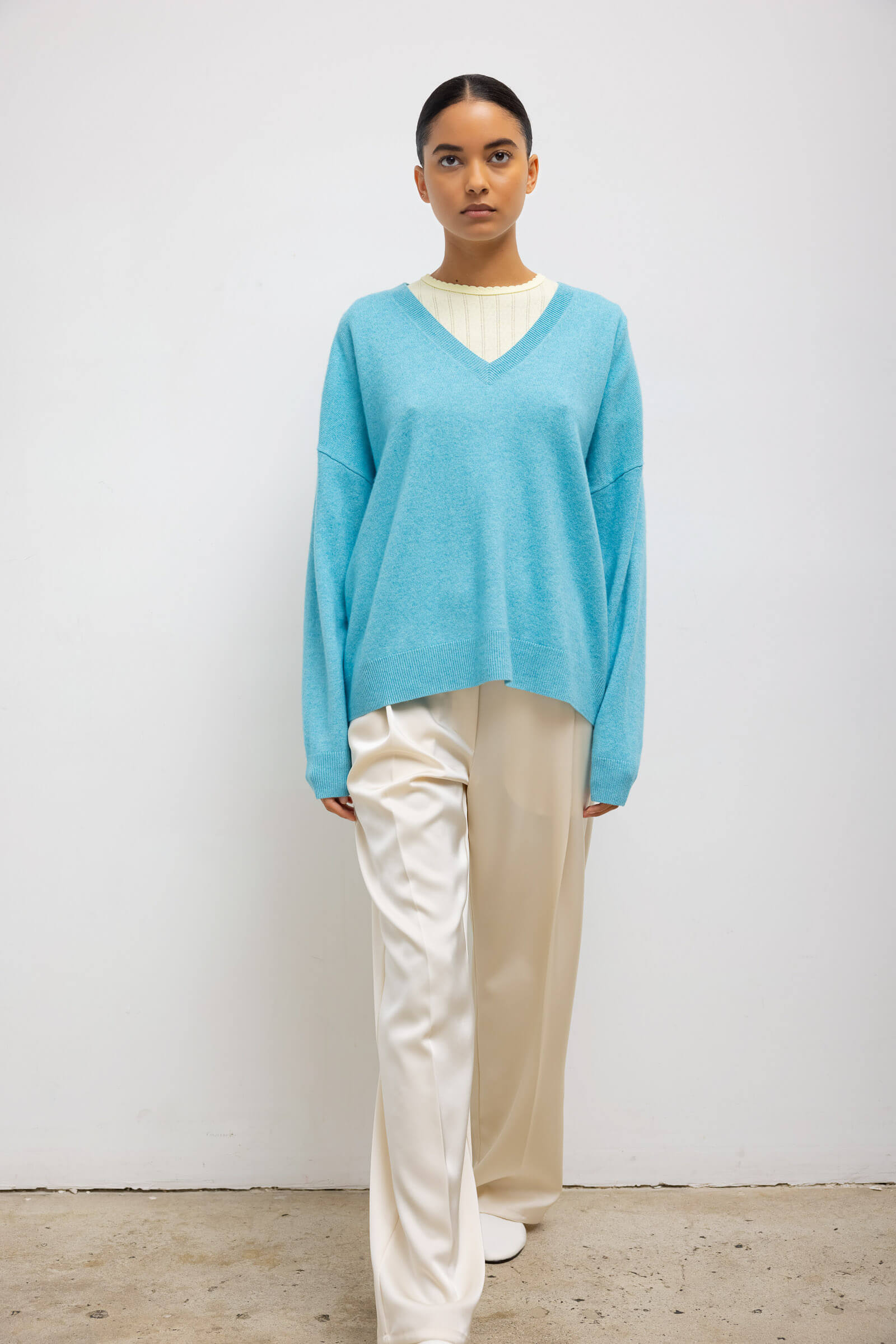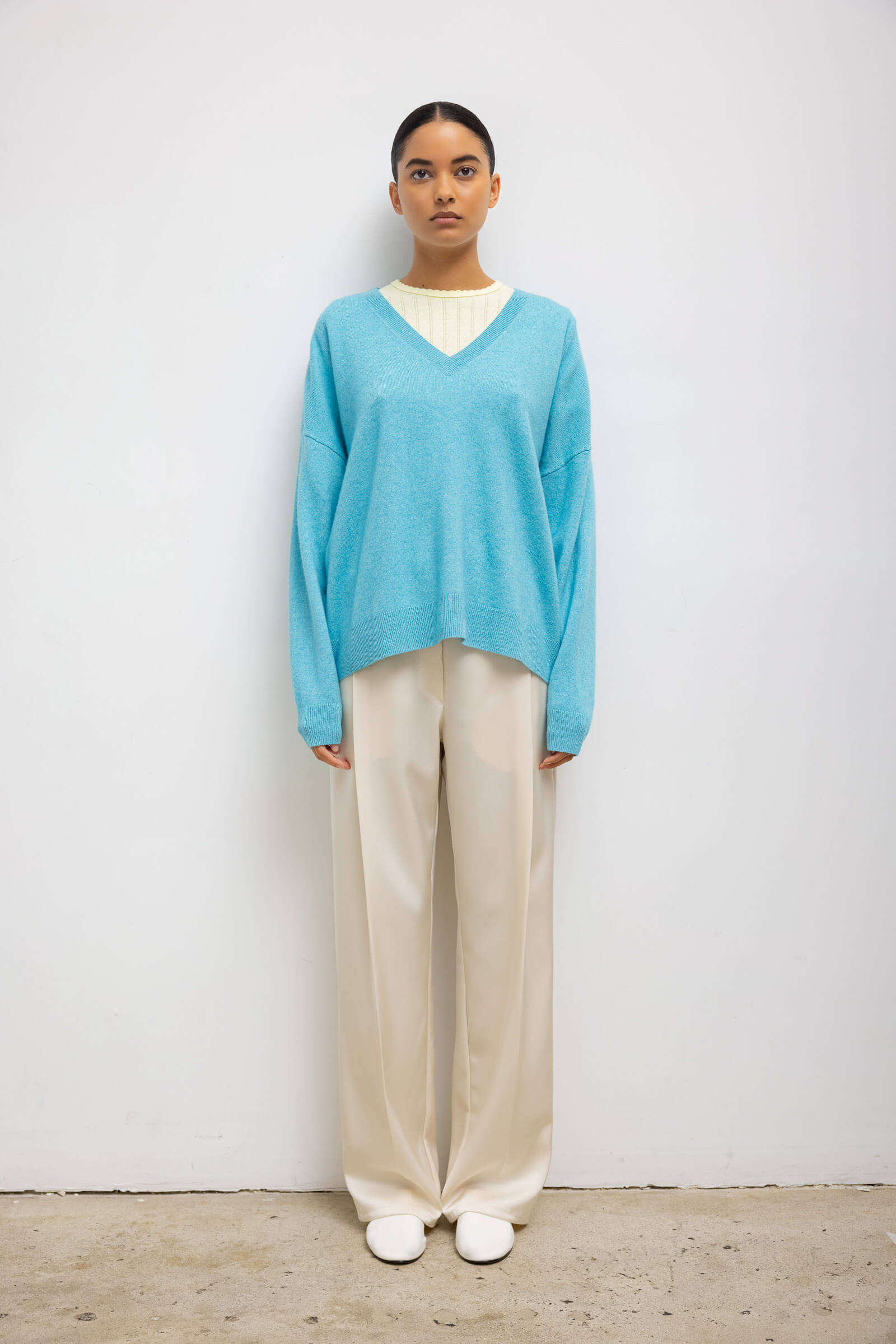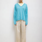 Knit in our plush Zoe Wool/Cashmere Knit, The Zoe V Neck is this season's perfect knit layer. Featuring a clean V neckline, slightly dropped shoulders, and full length sleeves. We're wearing this over our favorite Margo Tee and lighter knits, like The James.