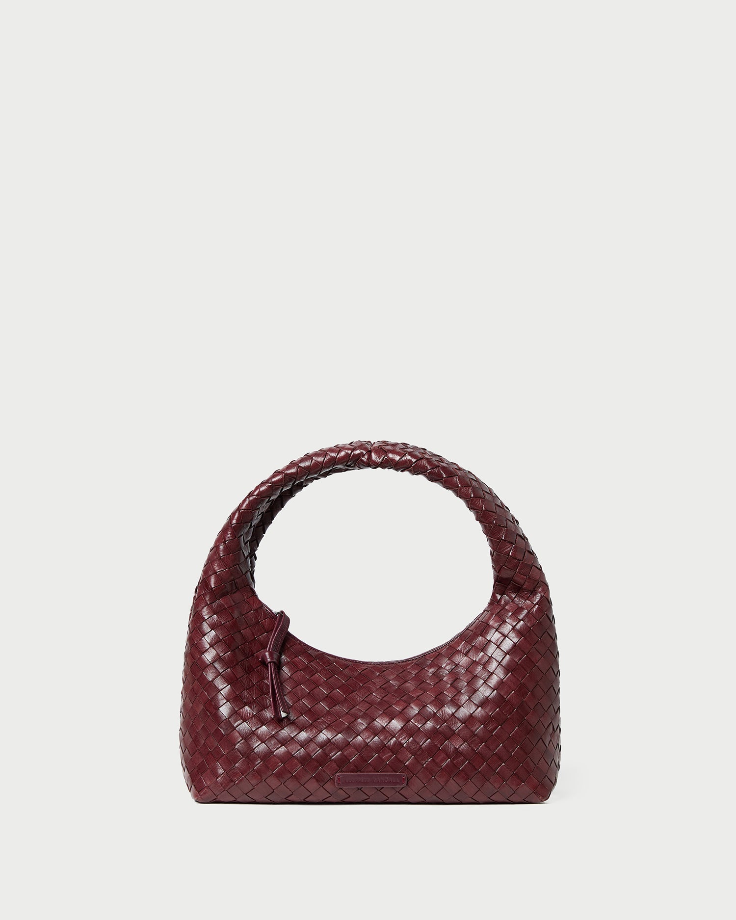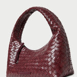 Shoulder bag in maroon woven leather. Inspired by our Willow Bag, it features a relaxed silhouette, a zipper closure, cotton lining, an interior zip pocket, and a blind embossed leather logo patch.