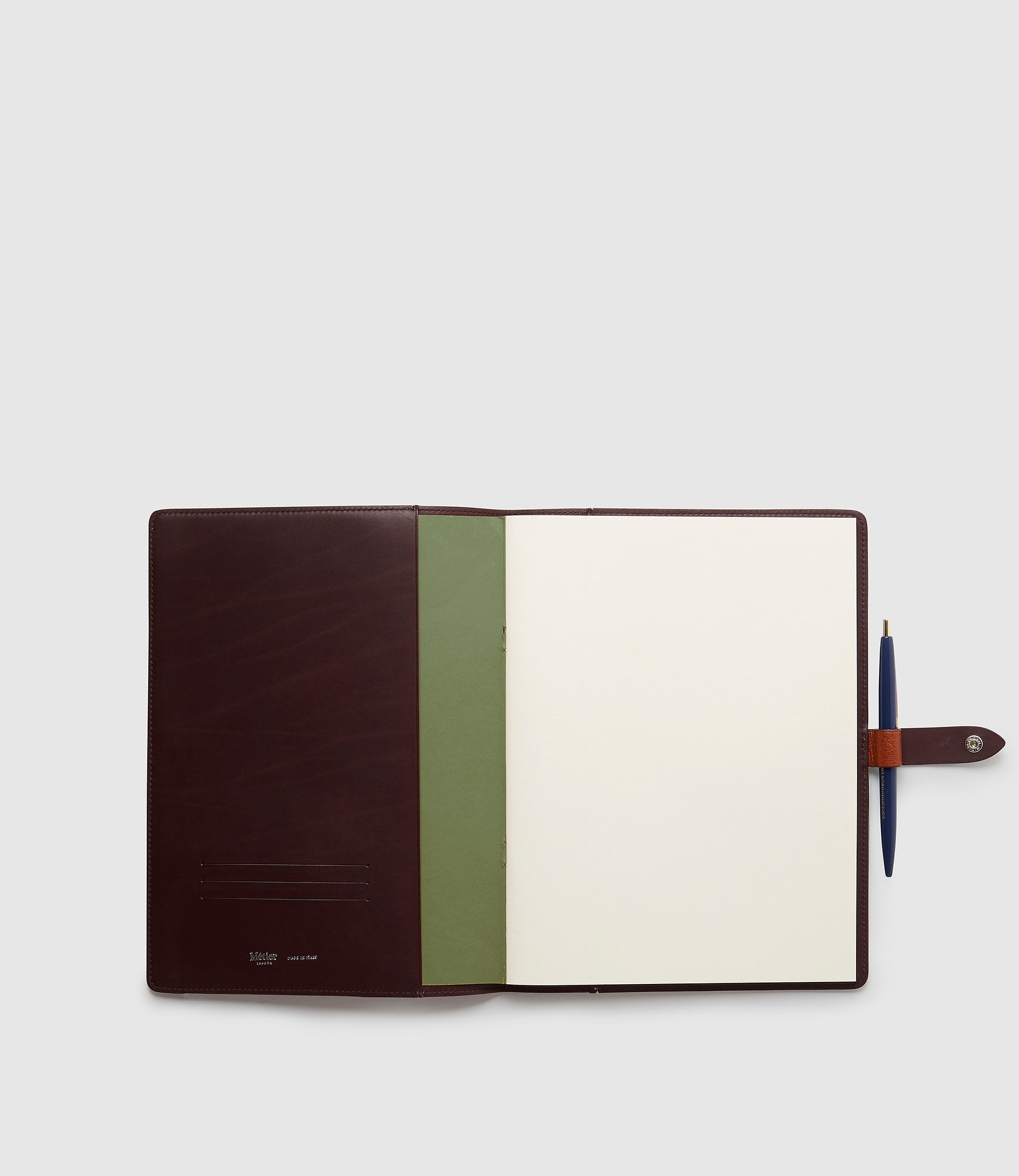 An elegant companion for your daily notes. Featuring business card slots and a slimline pen loop discreetly placed under the strap, this leather notebook cover has been designed to effortlessly follow you from your desk at your home office to anywhere the road takes you. Please note paper agenda and notebook are purchased separately.