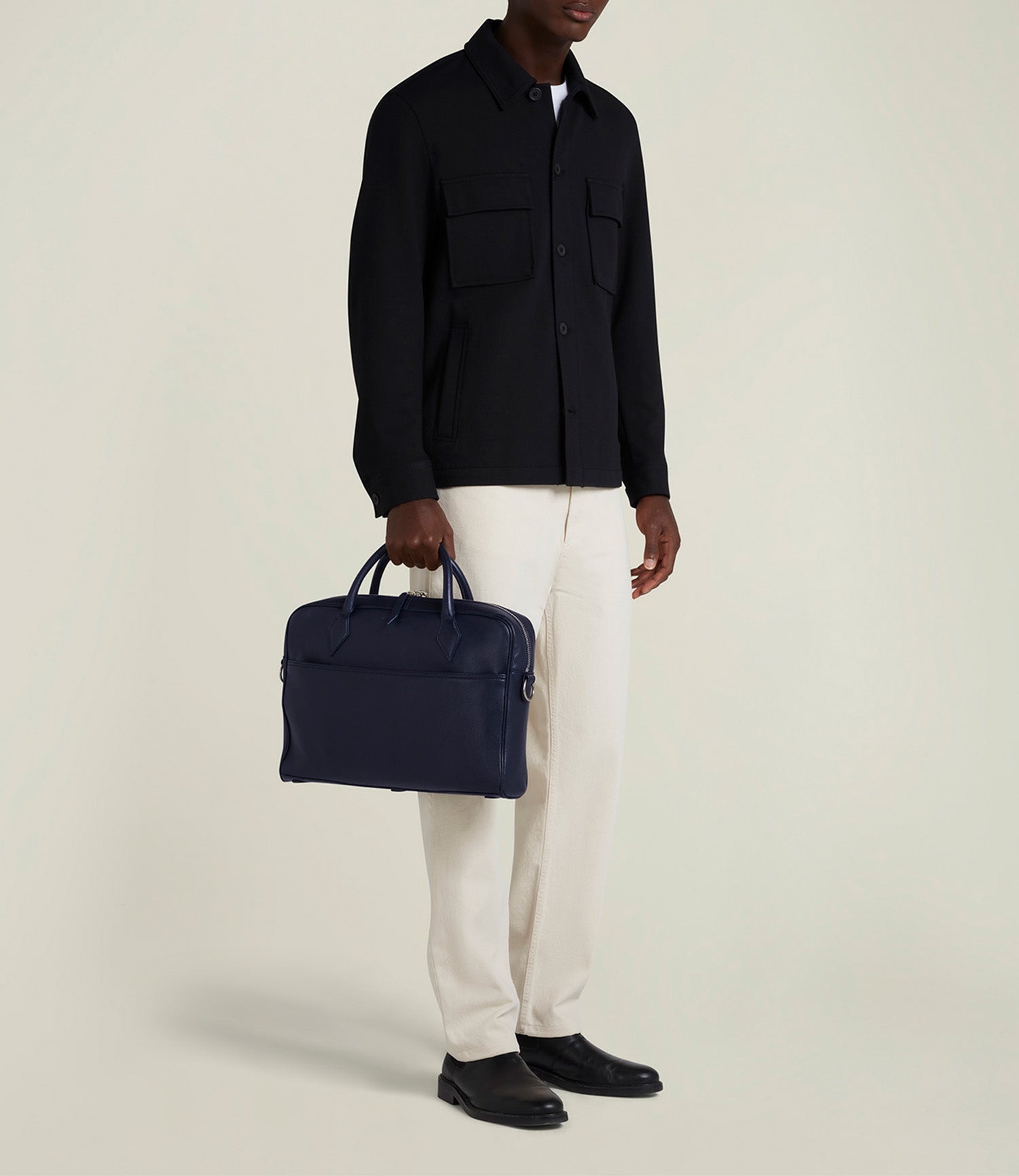 A slimline version of our Closer Briefcase, this elegantly designed briefcase is designed to accommodate a laptop, and has interior and exterior pockets for all your everyday essentials. A hidden compartment on the back panel can transform from an extra pocket into a trolley loop. Lightweight and beautifully crafted, it can be comfortably carried by the smooth handles or worn on the shoulder or crossbody using the detachable strap.