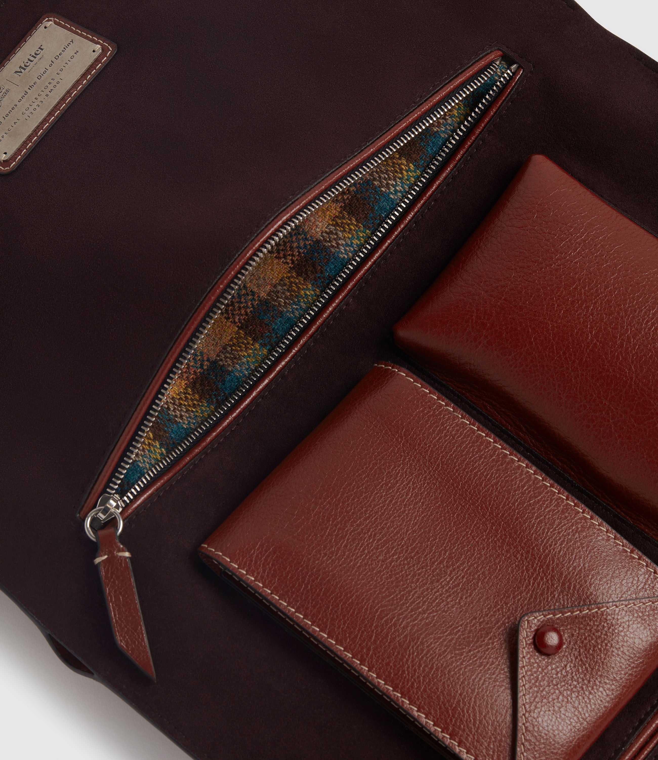 Very limited, numbering only ten for our Collectors Edition, each Indiana Jones™ Runaway is truly unique, featuring patchwork lining appropriated from Indy’s and Helena’s actual costumes worn in the film. Accompanied with documentation detailing the origins of all the materials used for the interior, it also has been assigned an individual serial number reflecting its exclusivity. Meticulously crafted in a special colourway of Marrakech Suede with salt stitching and finished with Rust Elvis Leather trim, a myriad of thoughtful compartments provide organisation and quick retrieval for your travel essentials. Carried on its own, it also seamlessly clips into our larger bags for the convenience of modularity.