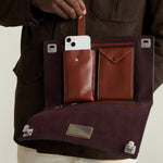 Very limited, numbering only ten for our Collectors Edition, each Indiana Jones™ Runaway is truly unique, featuring patchwork lining appropriated from Indy’s and Helena’s actual costumes worn in the film. Accompanied with documentation detailing the origins of all the materials used for the interior, it also has been assigned an individual serial number reflecting its exclusivity. Meticulously crafted in a special colourway of Marrakech Suede with salt stitching and finished with Rust Elvis Leather trim, a myriad of thoughtful compartments provide organisation and quick retrieval for your travel essentials. Carried on its own, it also seamlessly clips into our larger bags for the convenience of modularity.