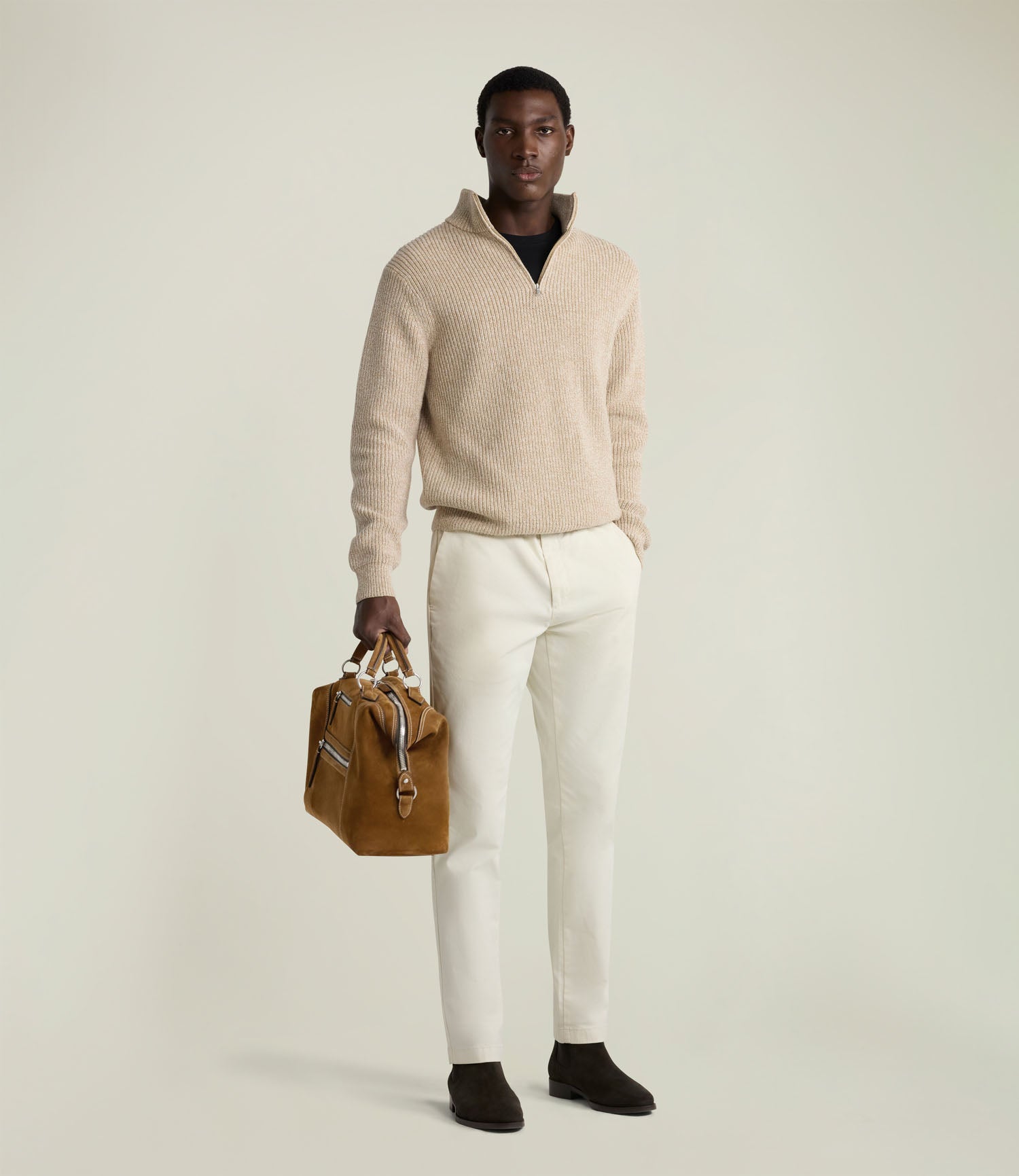Very limited in number; only ten Indiana Jones™ Vagabond Messengers were created for this Collector’s Edition. Each one is truly unique, featuring its own, one-of-a-kind patchwork lining appropriated from Indy’s and Helena’s actual costumes worn in the film. Accompanied with documentation detailing the origins of all the materials used for the interior, it has also been assigned an individual serial number reflecting its exclusivity. Meticulously crafted in a special colourway of Marrakech Suede with salt stitching and finished with Rust Elvis Leather trim, it's perfectly proportioned for all daily travels while exuding the adventurous spirit of the iconic franchise.
