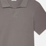 A modern update to the classic closet staple, this short-sleeve polo features an open V-neck collar sans buttons. In Storm Grey, the premium textured cotton fabrication lends a luxurious look and feel. Fit it into your 9-5 rotation as well as your off-duty weekend routine.