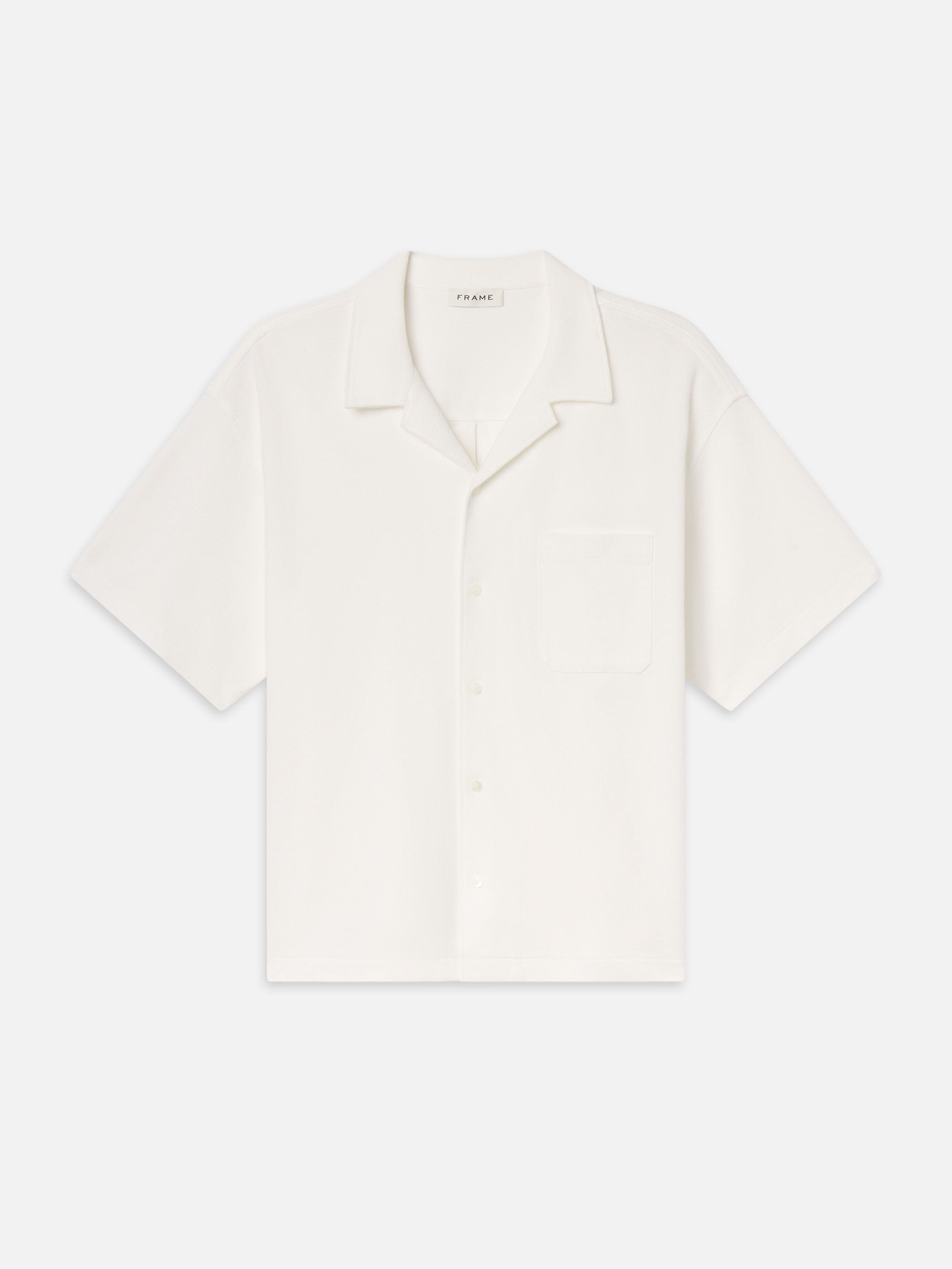 Premium textured cotton elevates a menswear staple to FRAME's level of luxury. The short-sleeved shirt has a relaxed fit that falls freely, transitioning from day to night with a classic collar, chest pocket and button front.