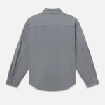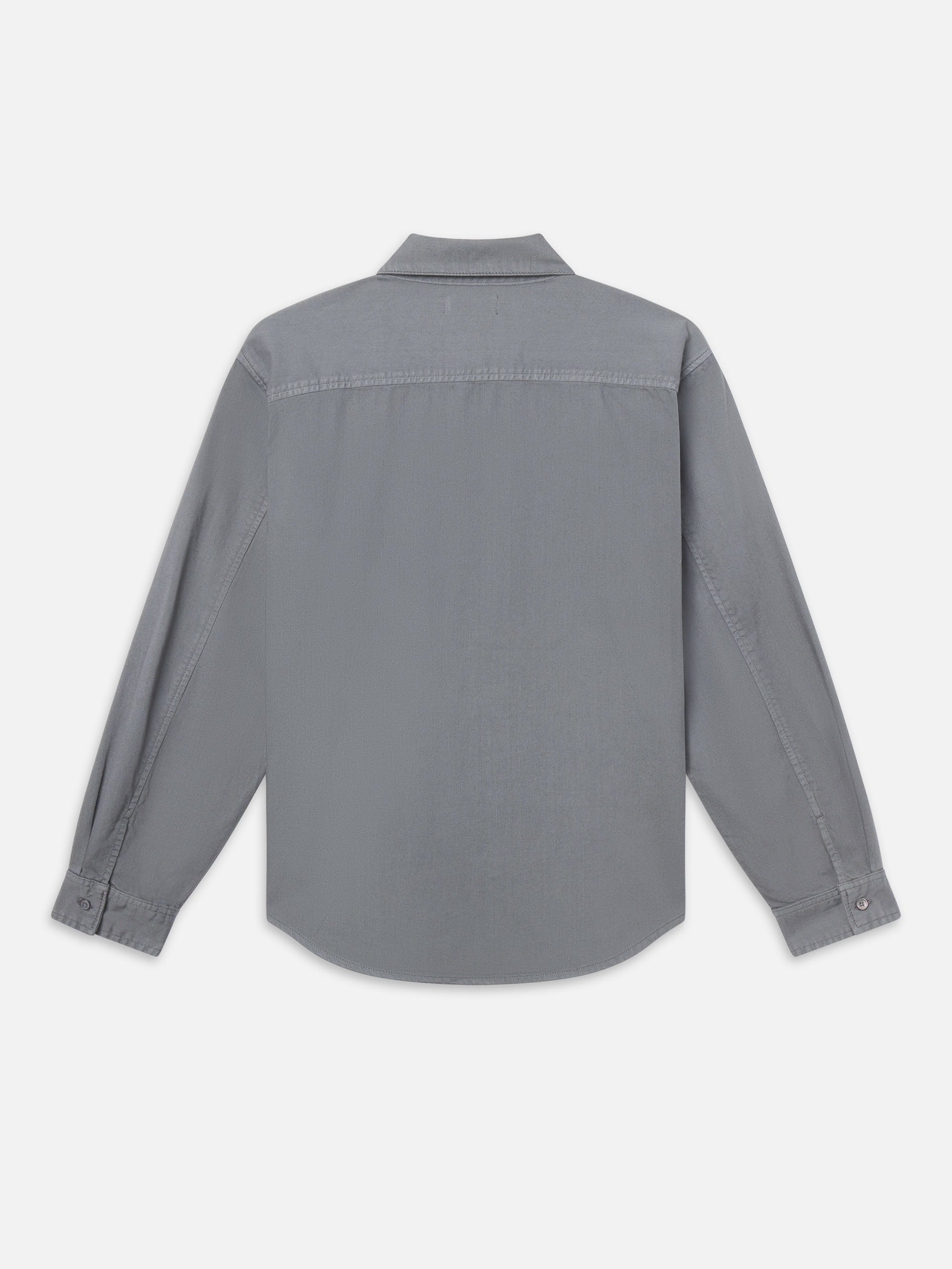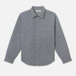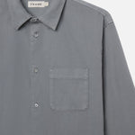 This sleek, smooth button down is crafted from 100% cotton in a unique gray-blue wash. With a front patch pocket, pearl grey buttons and classic curved hem.