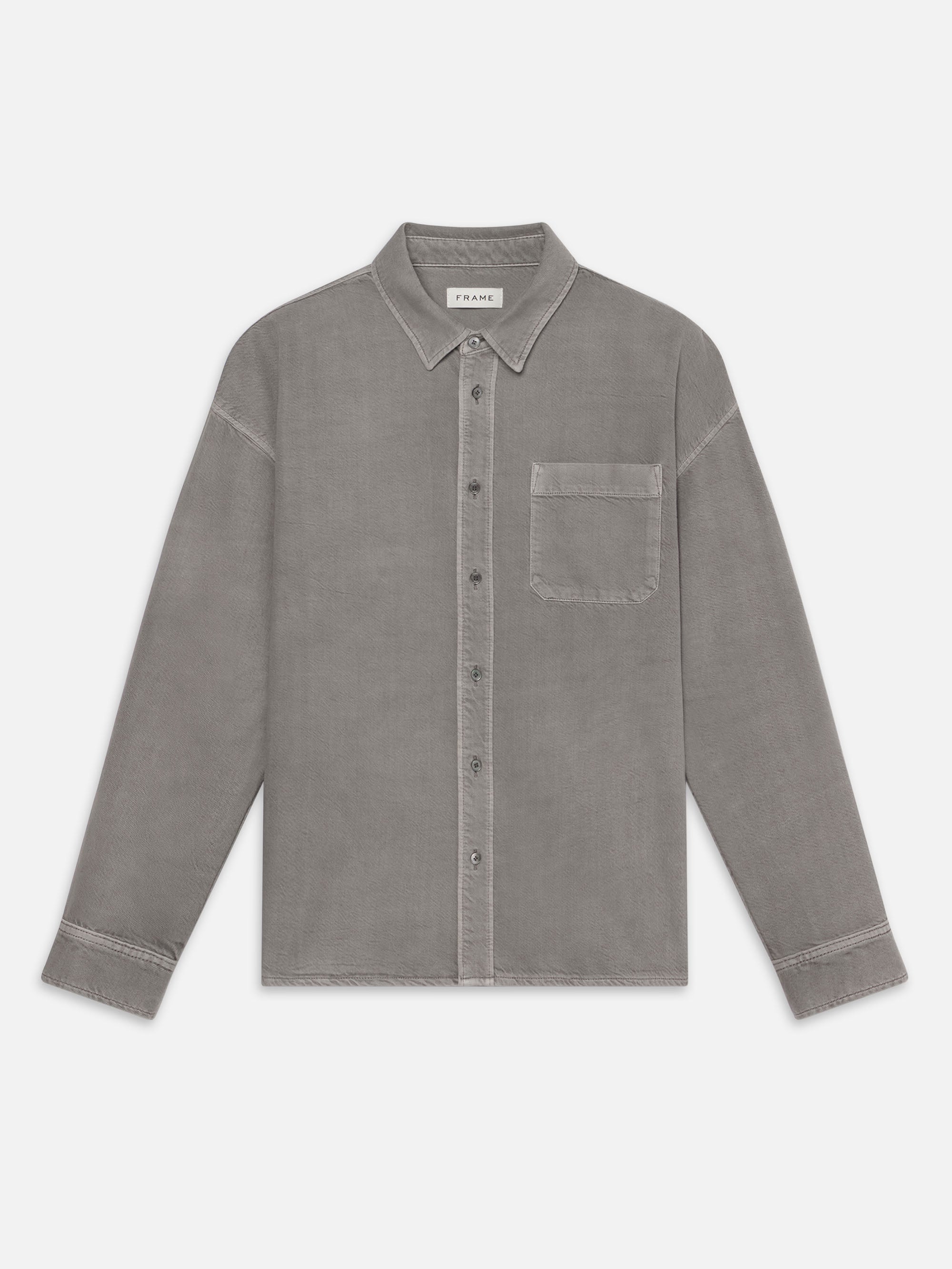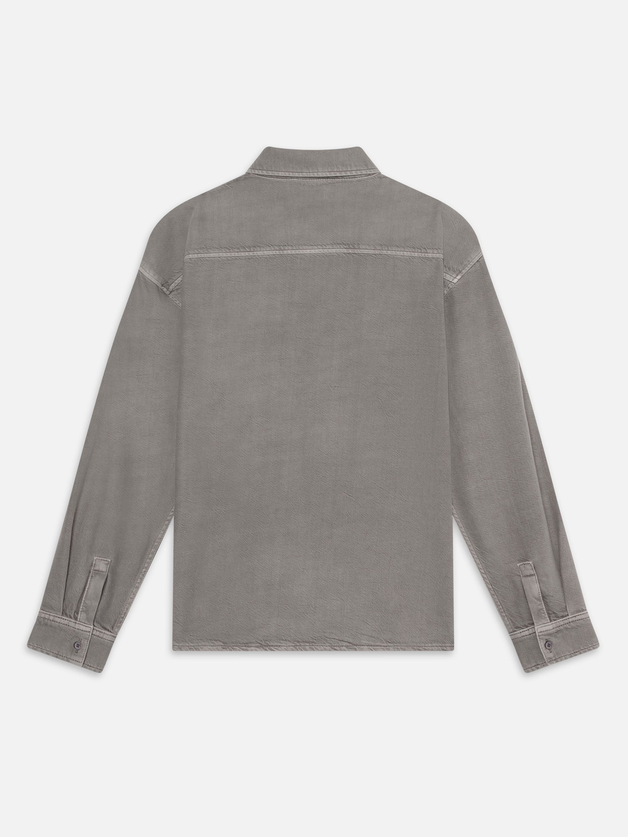 Built like a shirt, wears like a jacket. This relaxed layer has a washed-in softness and structured feel that holds its shape. Finished in Storm Grey—a muted tone with a lived-in edge.