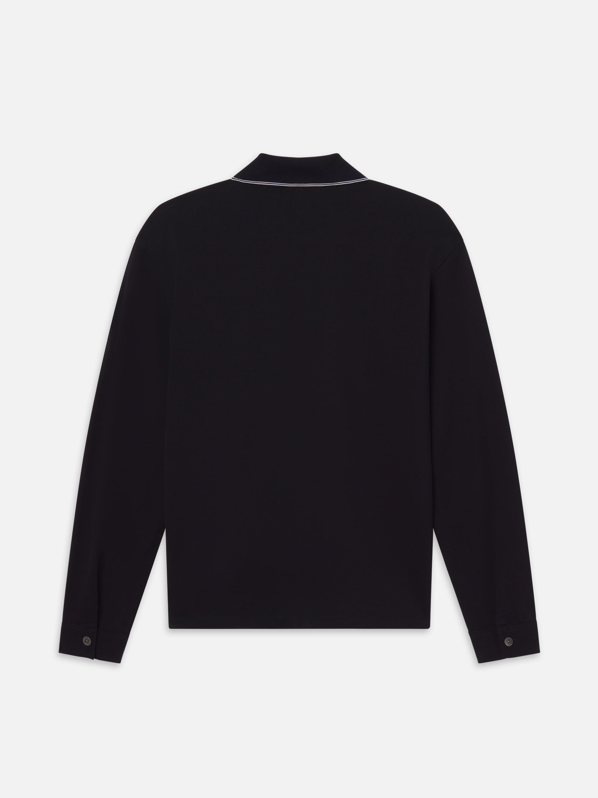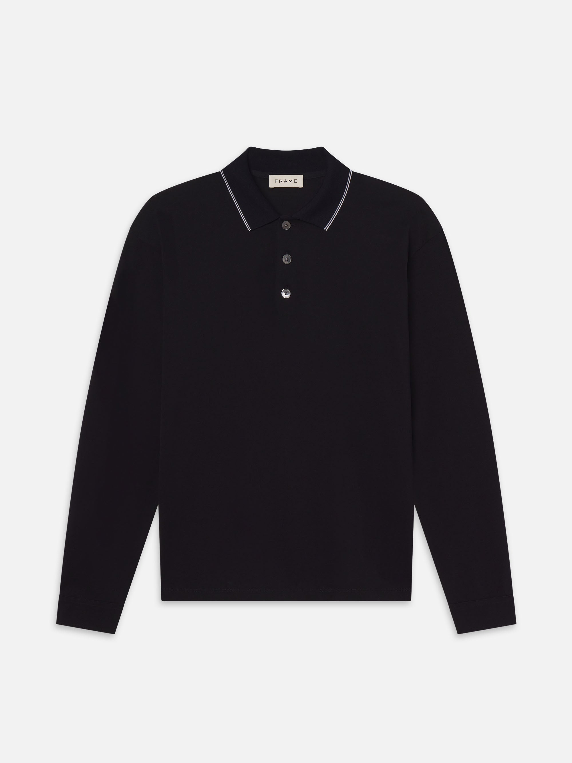 A long sleeve polo built for warmer months. Knit in a lightweight pique that breathes like a tee but carries the structure of a shirt, this elevated essential is finished with a tailored collar, clean cuffs, and a smooth handfeel. Ideal for office layering or solo wear off-duty.