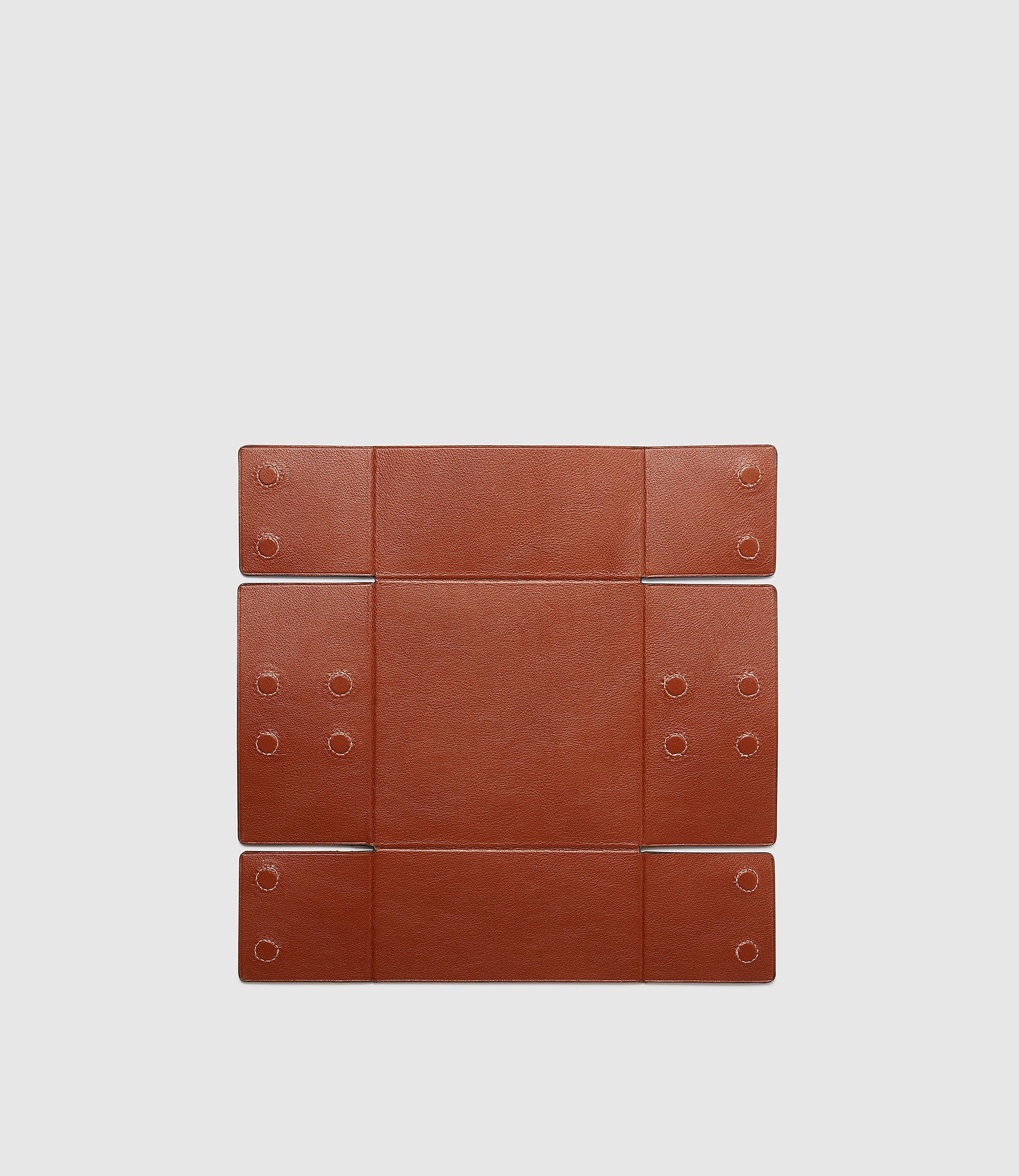 A versatile organisation staple, our leather trays collapse completely flat and pack away with ease. They are perfect for storing valuables at your home away from home or bringing along to a spa to keep your valuables in a safe place. Double-sided, leather covered magnets and unique canaletto construction allow for the boxes to be reversed to your liking. Exquisite, contrast hand-stitching articulates heat-sealed seams. Monogrammable with your choice of initials for an extra personal touch.