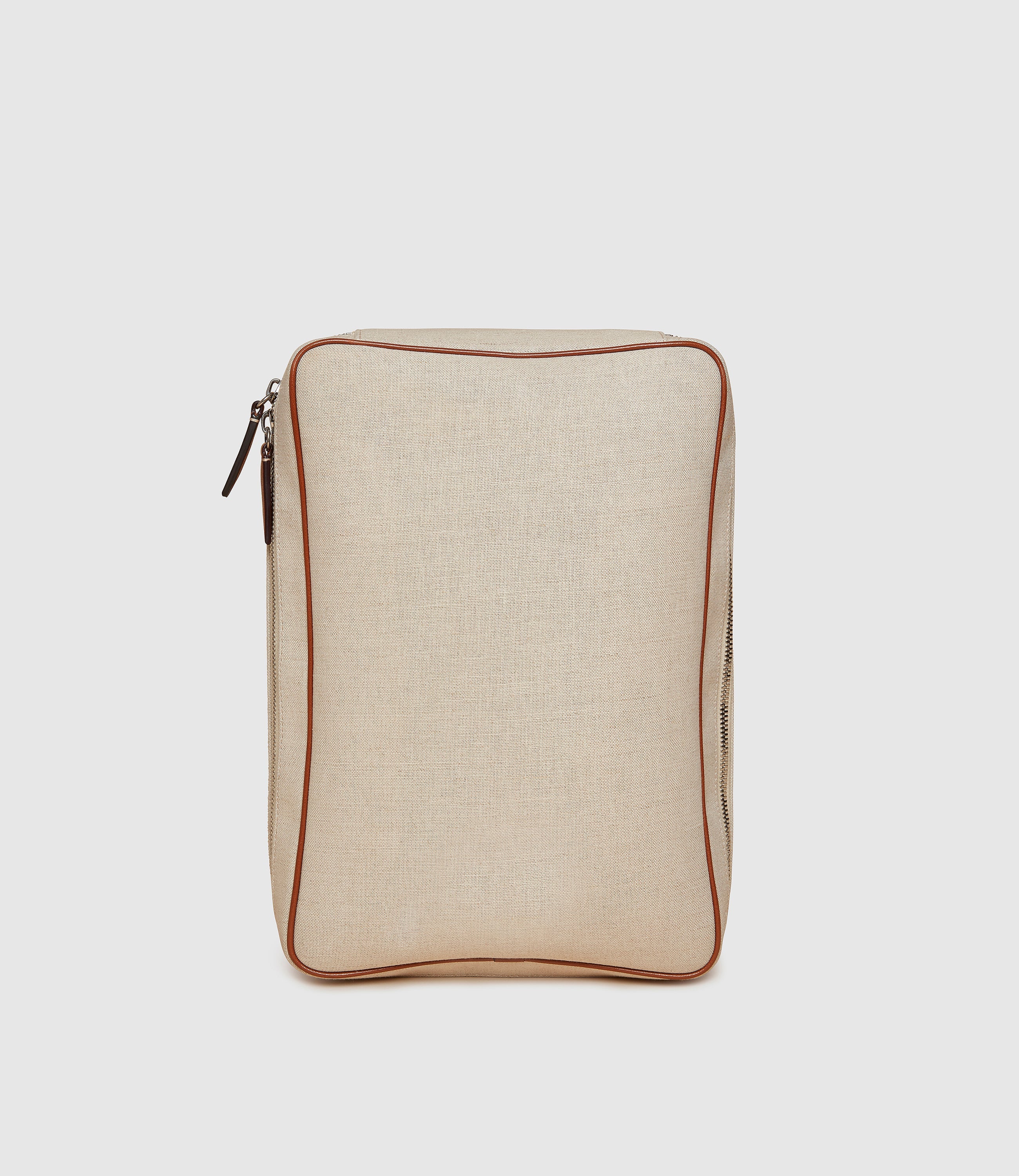 Métier - Large Travel Organiser Natural Linen with Cognac