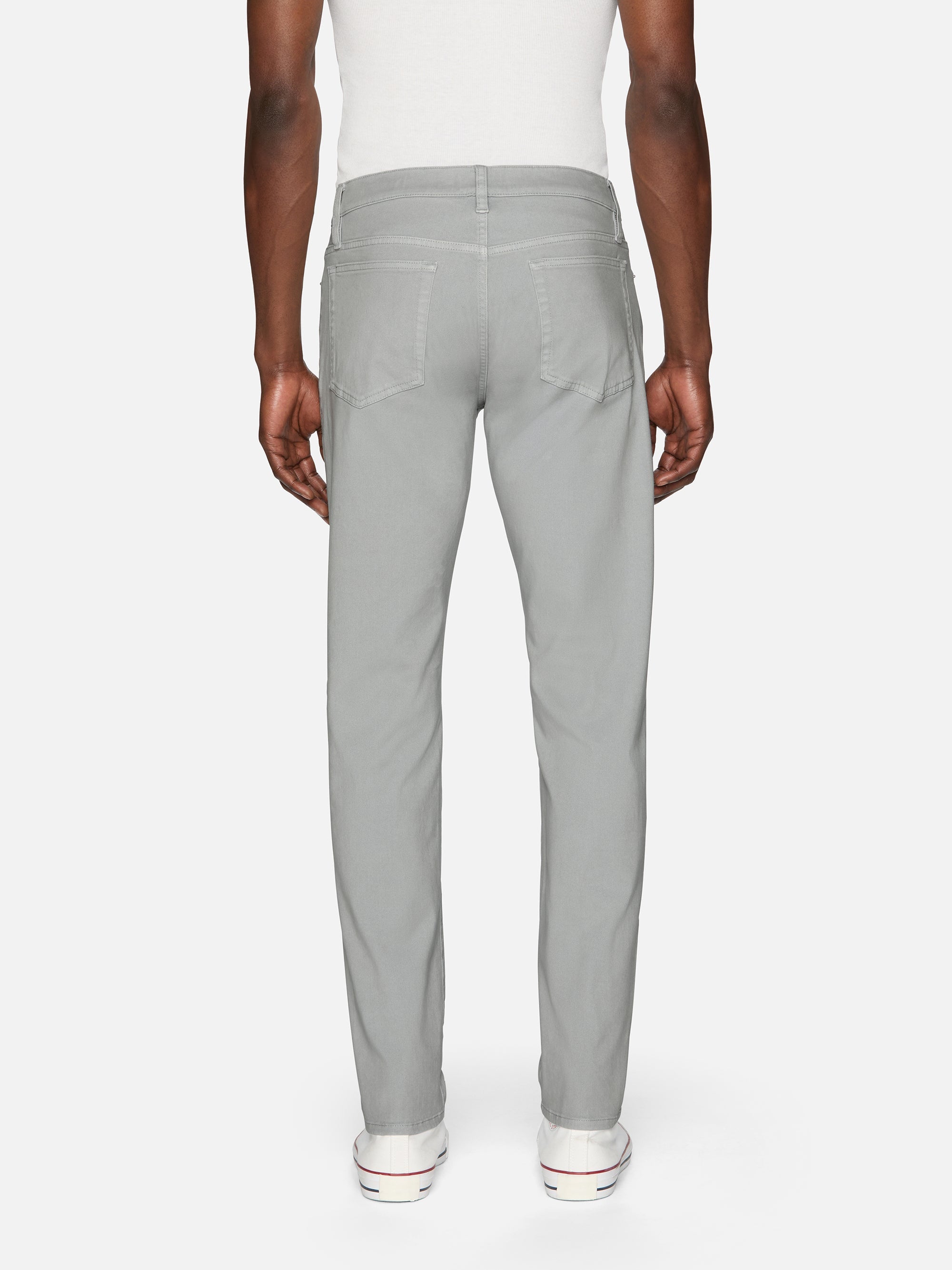 A FRAME signature jean, this style is designed with a classic 5-pocket construction, comfortable mid rise, flattering straight leg, and tapered slim fit at the leg opening. Crafted from smooth Structured Stretch denim in a subtle Grey Blue wash.
