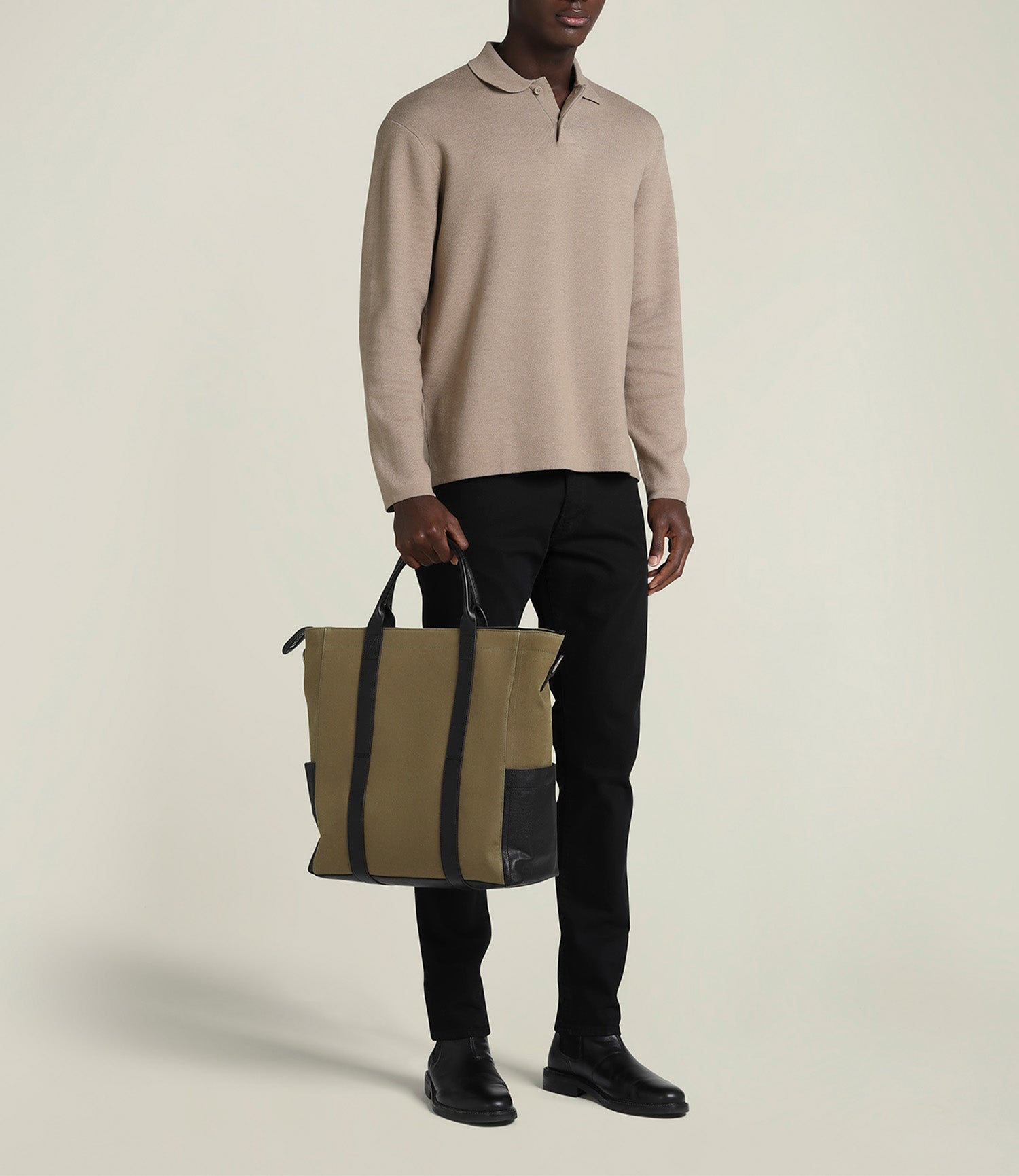 Métier - Mariner Zippered Tote Military Twill Khaki with Cacao