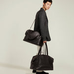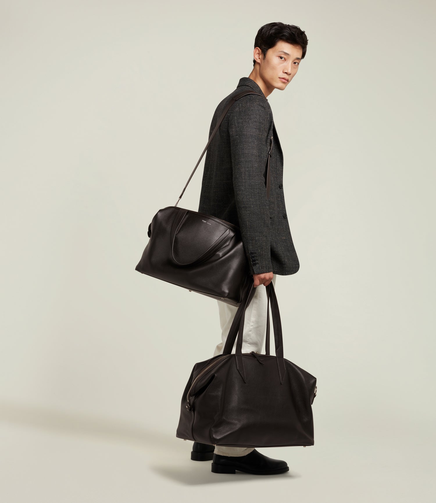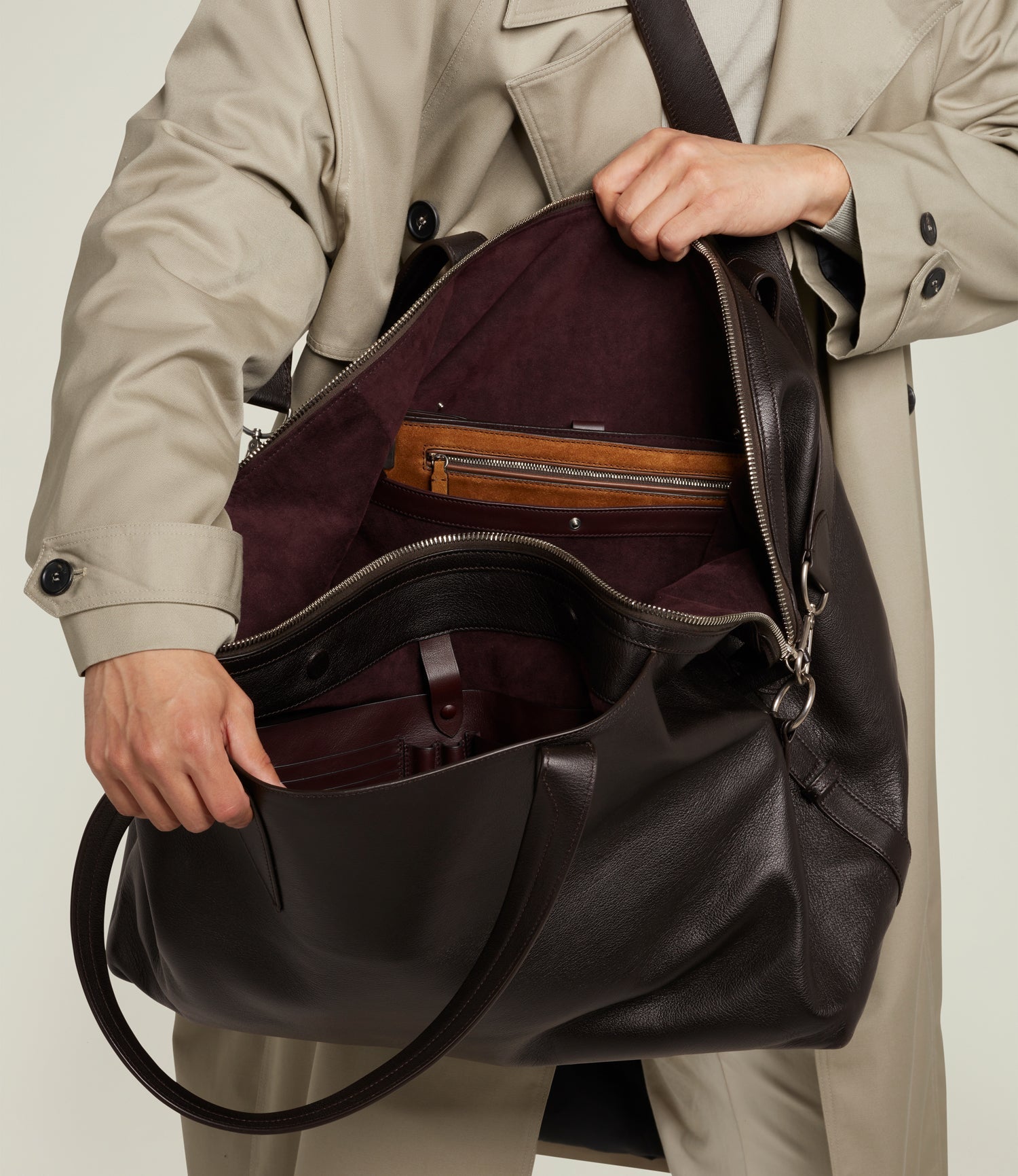 Designed for a longer getaway, the Nomad Weekender's clever proportions, organised interior and comfortable shoulder straps make it the perfect airplane carry-on and travel bag. Featuring a hidden magnetic front pocket with card slots and a passport holder to access travel essentials, the bag's side tabs unclip to create a roomier interior, adaptable to your journey. Both the Stowaway and Runaway can comfortably fit inside for added functionality. Comes with a detachable and adjustable shoulder strap. Fits up to a 16" laptop.