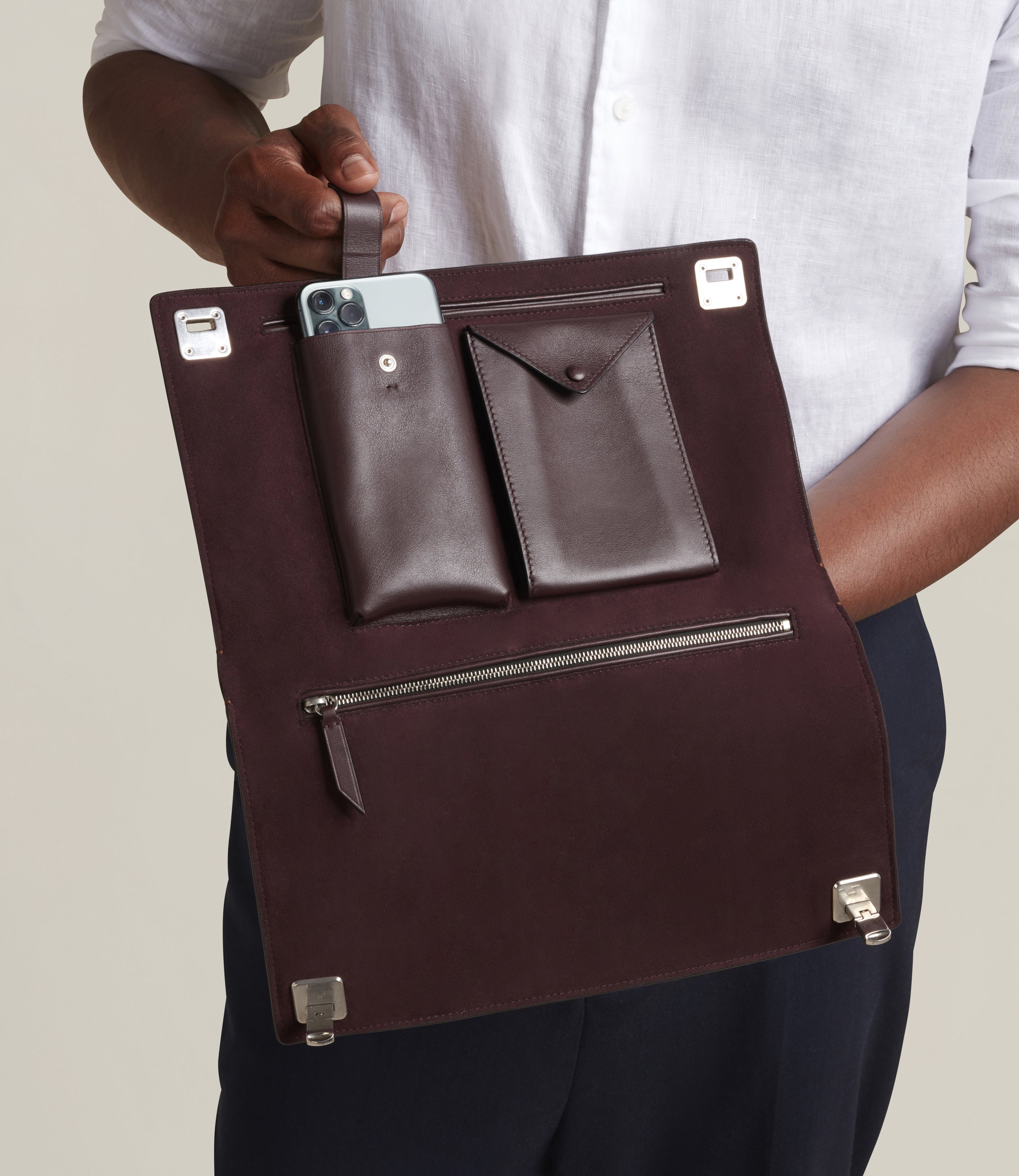 The Runaway brings even the most scatterbrained multi-tasker into order. Elegantly fixes your wallet, keys, boarding pass, metro card and passport into place, which means no more searching for the things you need most. Clips seamlessly into most of our larger bags as a panel; can also be carried on its own.