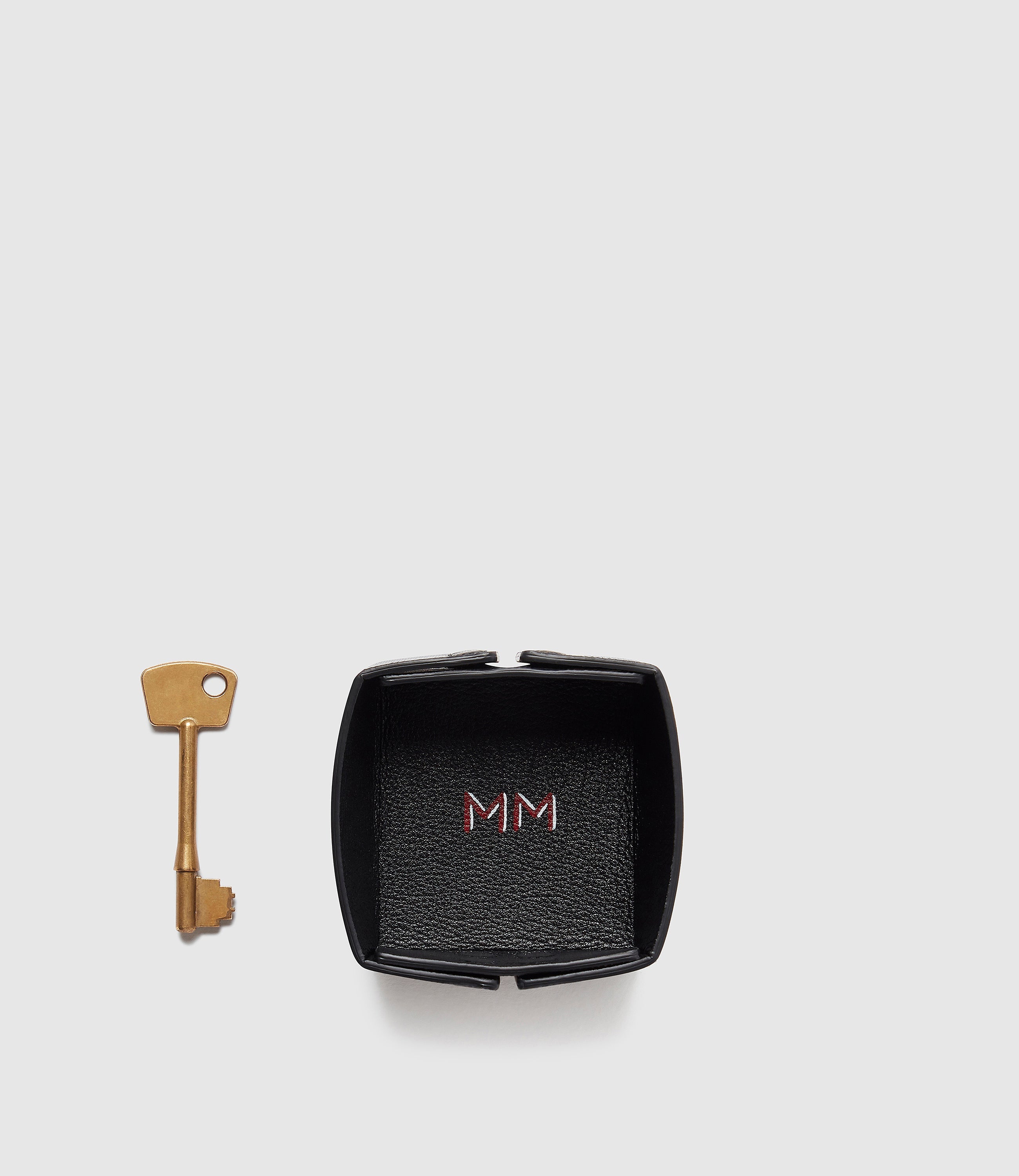 A versatile organisation staple, our leather trays collapse completely flat and pack away with ease. They are perfect for storing valuables at your home away from home or bringing along to a spa to keep your valuables in a safe place. Double-sided, leather covered magnets and unique canaletto construction allow for the boxes to be reversed to your liking. Exquisite, contrast hand-stitching articulates heat-sealed seams. Monogrammable with your choice of initials for an extra personal touch.