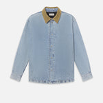 FRAME - Suede Collar Denim Overshirt -- Esme