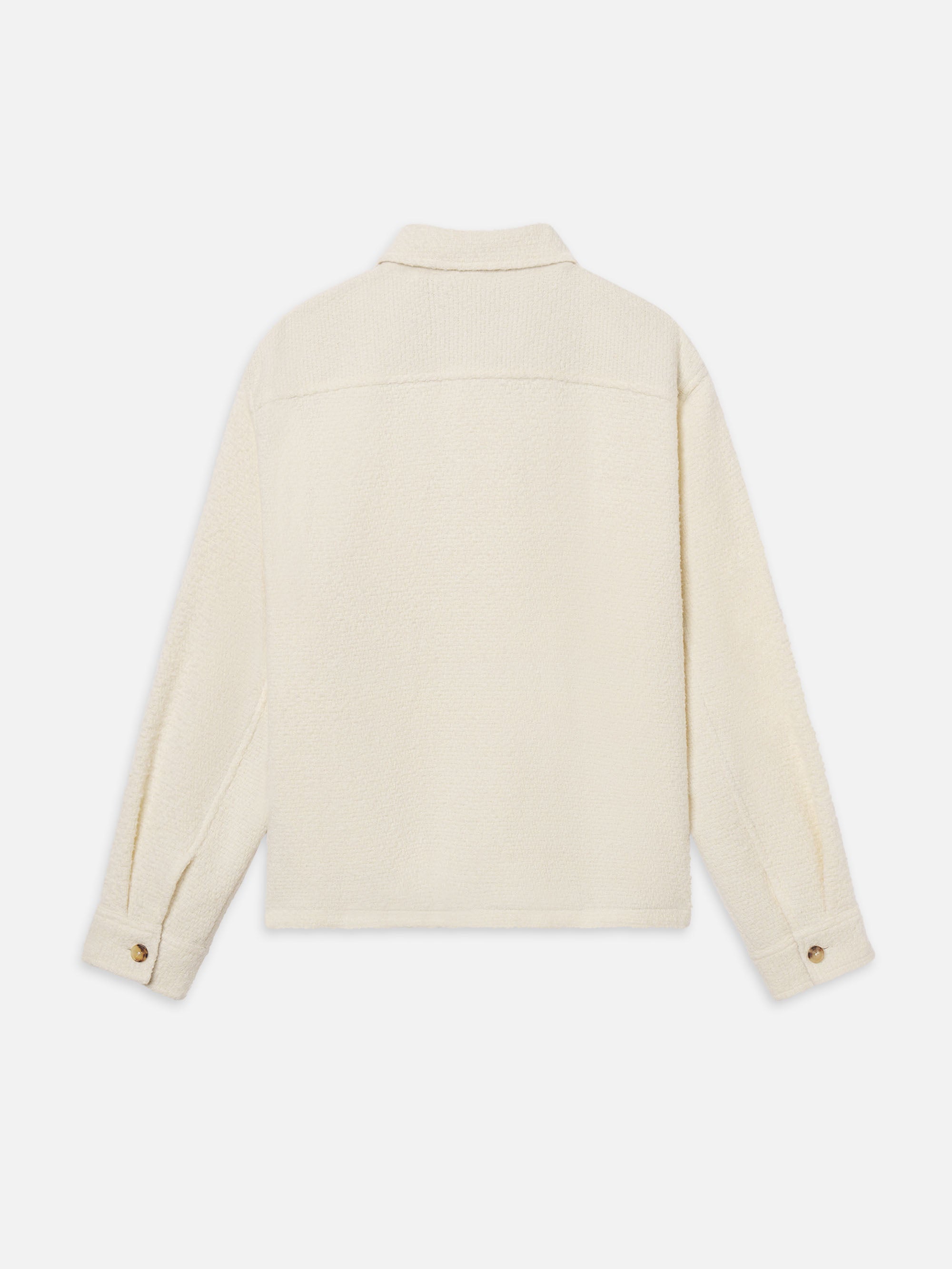 A textured overshirt woven in mini tweed squares. Double chest pockets and an effortless feel—throw it over anything.