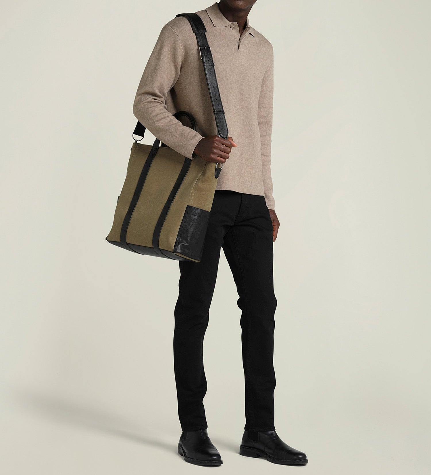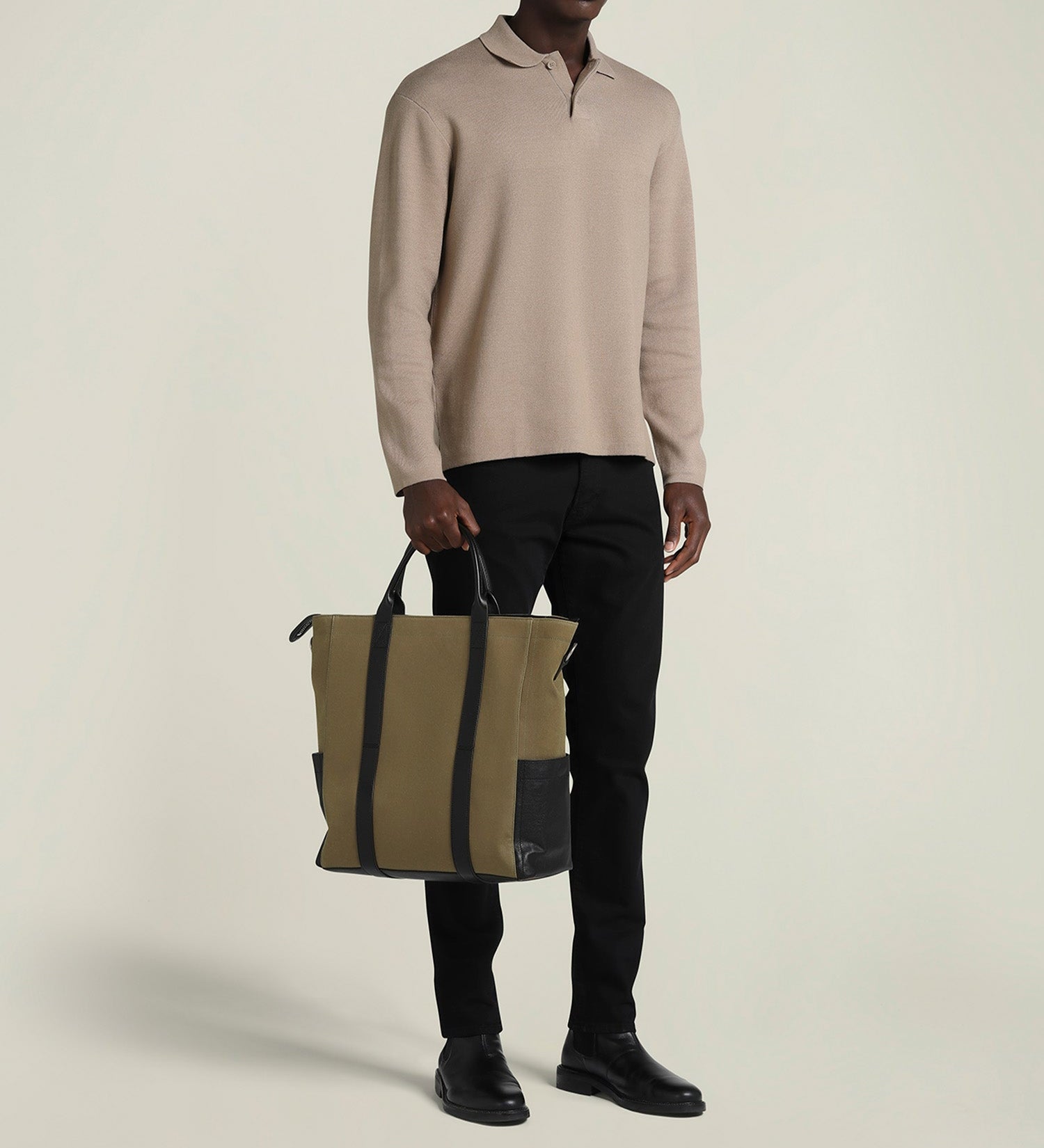 Métier - Mariner Zippered Tote Military Twill Khaki with Cacao