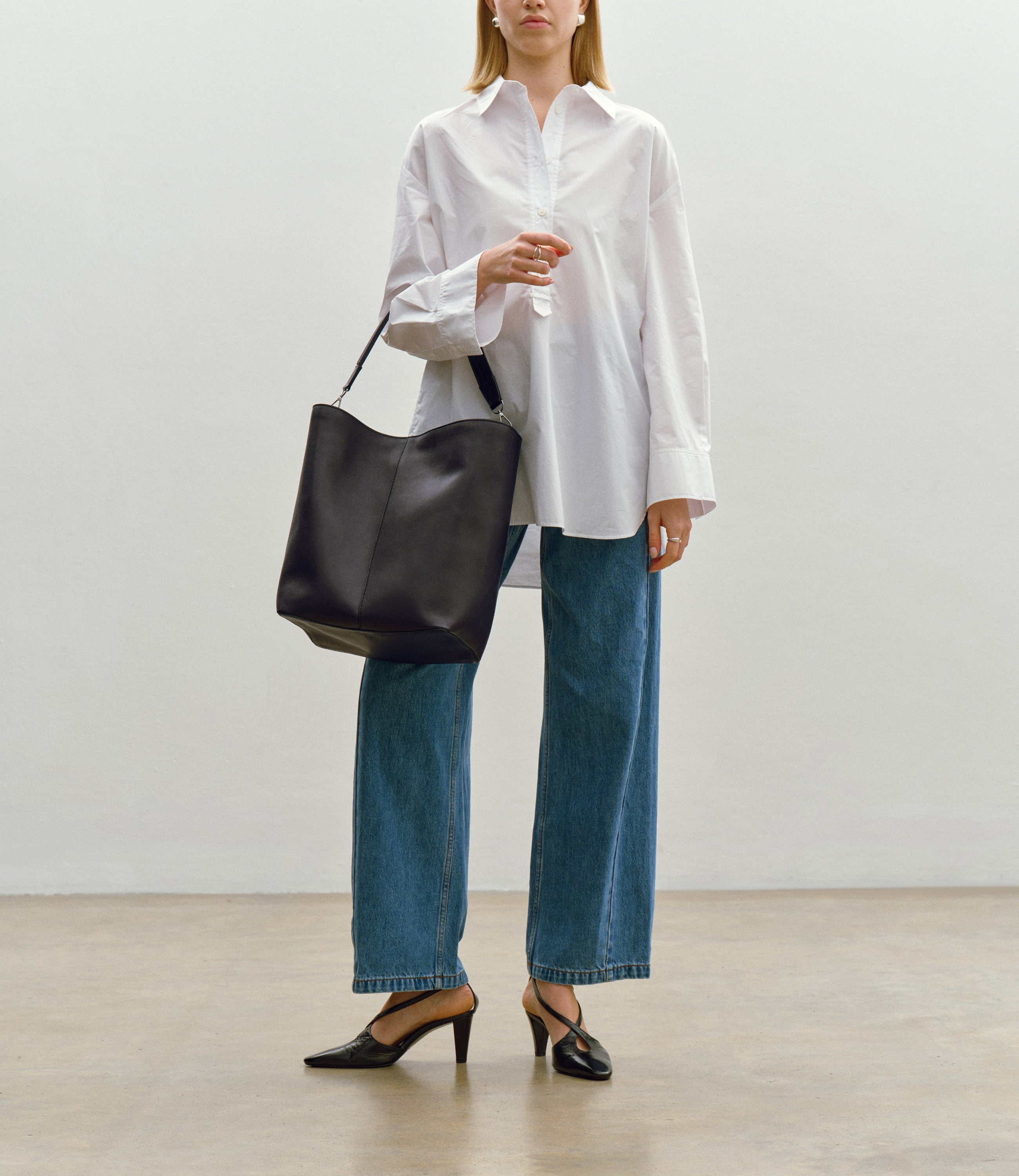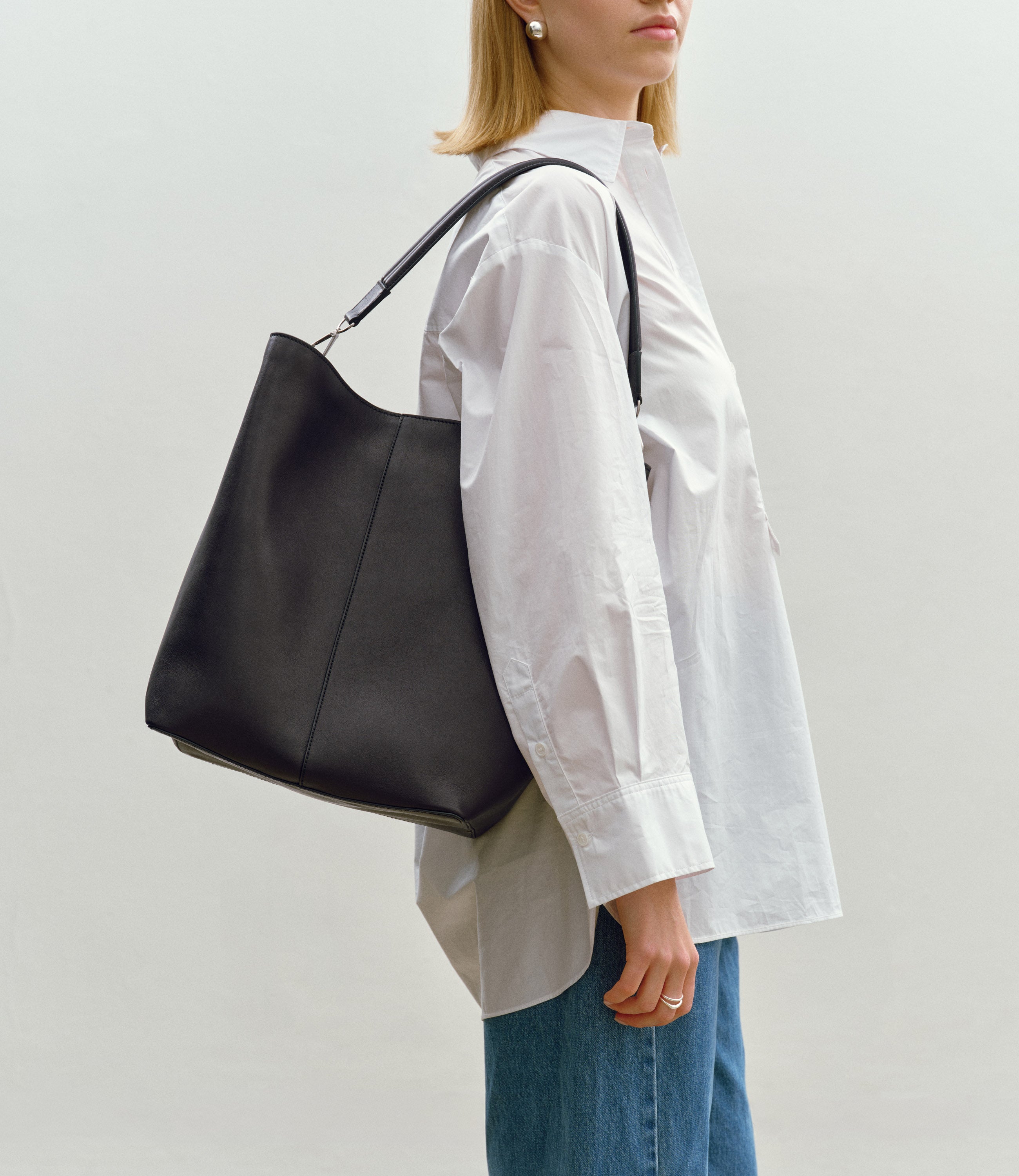 Handcrafted in Italy, this effortless carryall is designed with a clean, seamless exterior and a perfectly slouchy shape. Interior pockets and cardholders provide easy access to your things, ensuring you never have to dig.