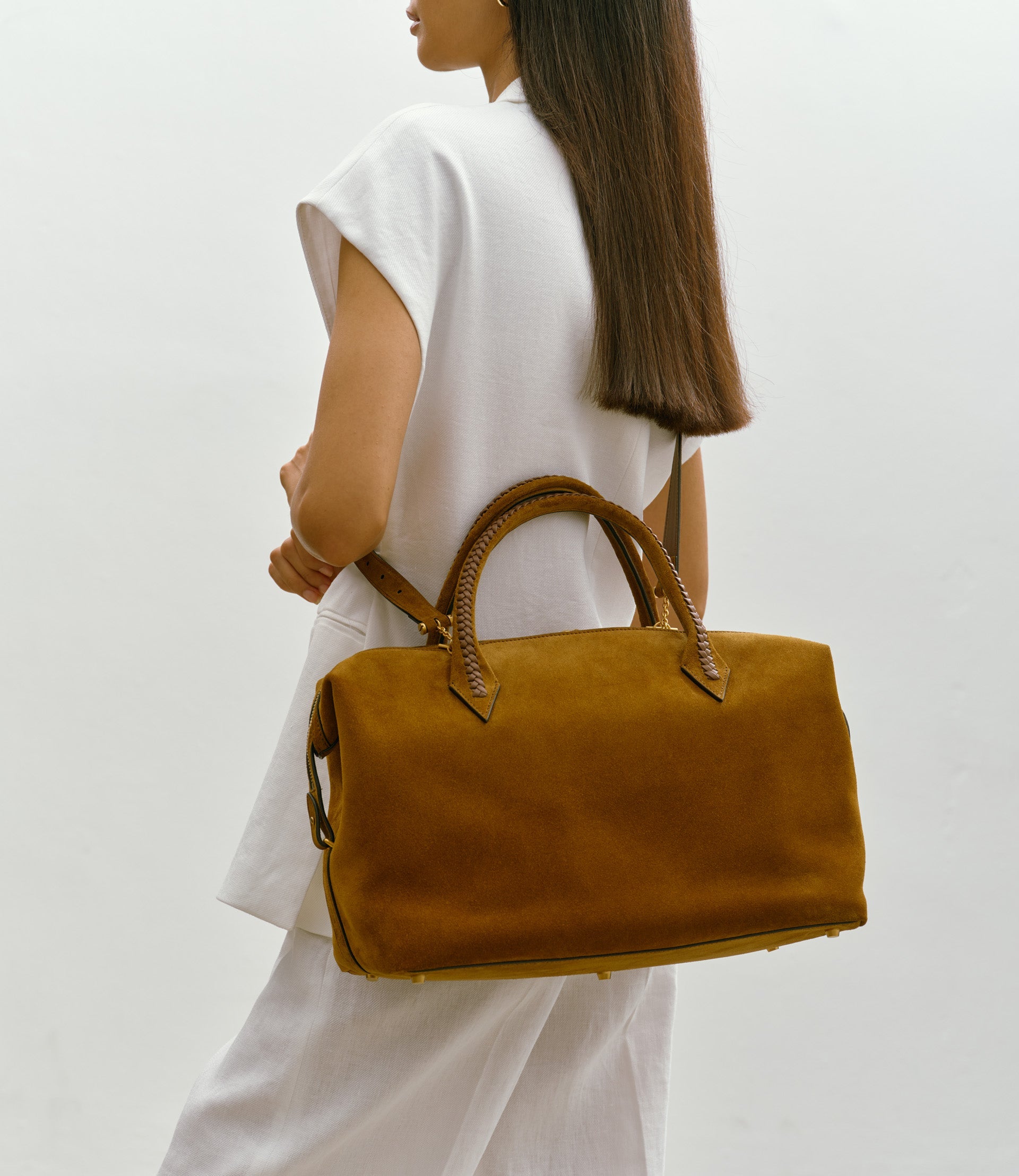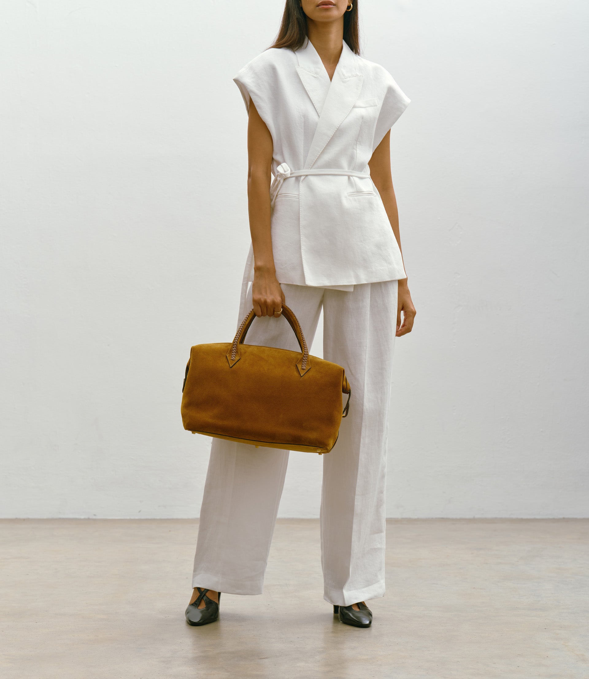 Our essential day bag, the Vérité City is classic, refined and extraordinarily lightweight, with room for a 14” laptop and much more. It features a discreet exterior magnetic pocket for easy access to your essentials, as well as an interior pouch that snaps out to become a smaller shoulder bag. Handcrafted in Italy with signature braided handles, solid brass hardware and a detachable shoulder strap. Formerly the Perriand.