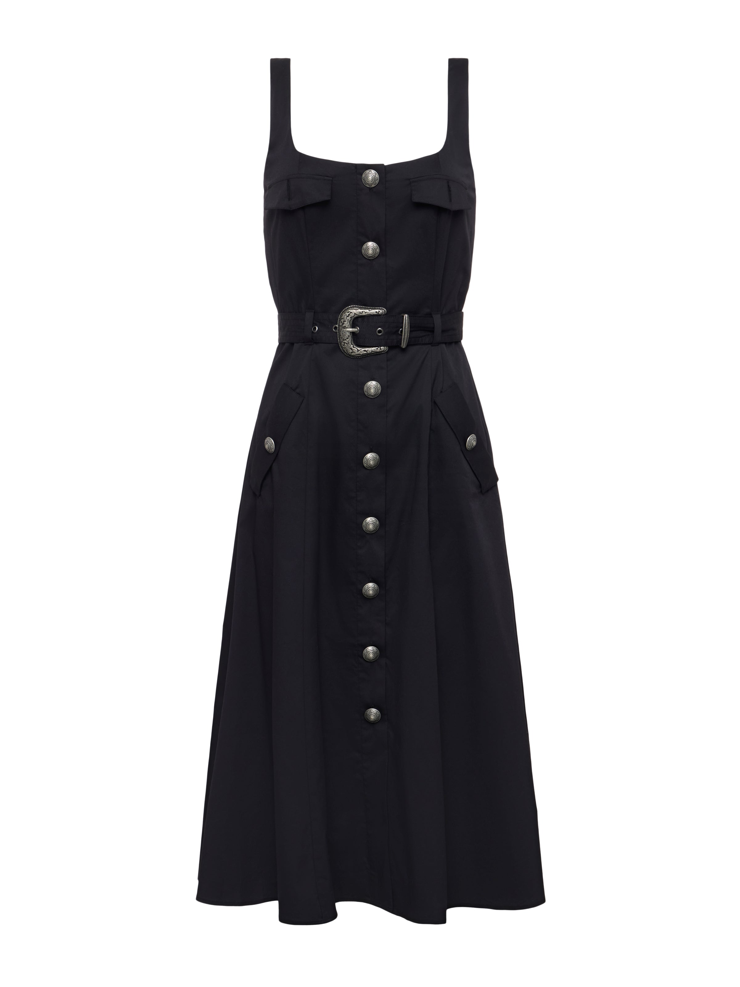 With a flattering fit and crisp structure, the Tazia is an effortless yet polished piece made for day to night. A Western-inspired buckle belt defines the waist, while silver tone buttons deliver contrasting drama.