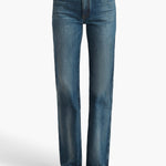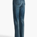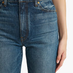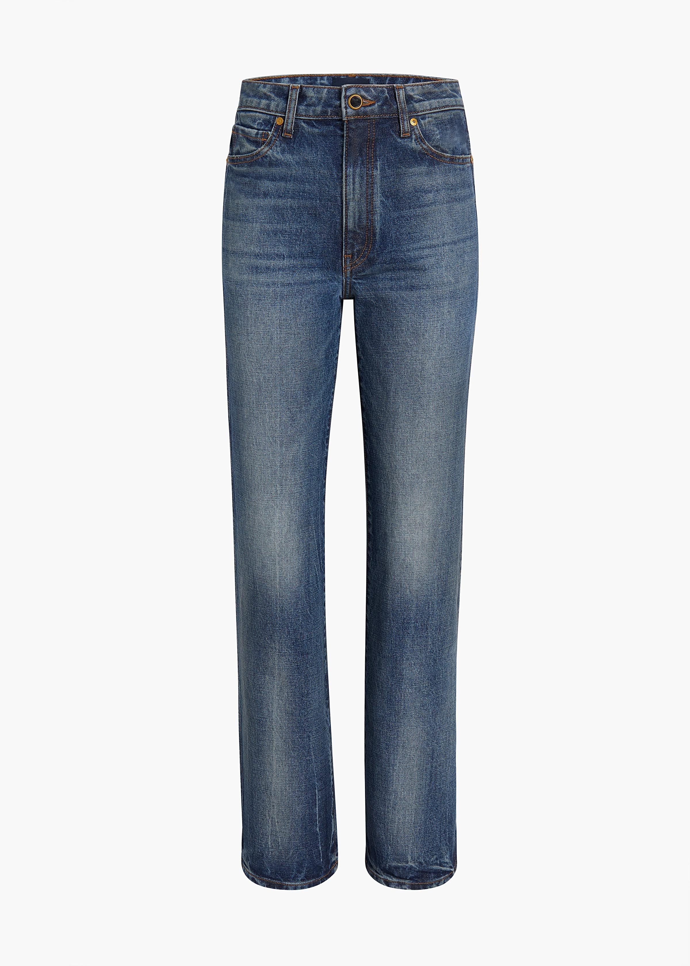 Designed to visually elongate the legs, these high-rise jeans flatter with a stovepipe silhouette in stretch denim. Finished by hand.