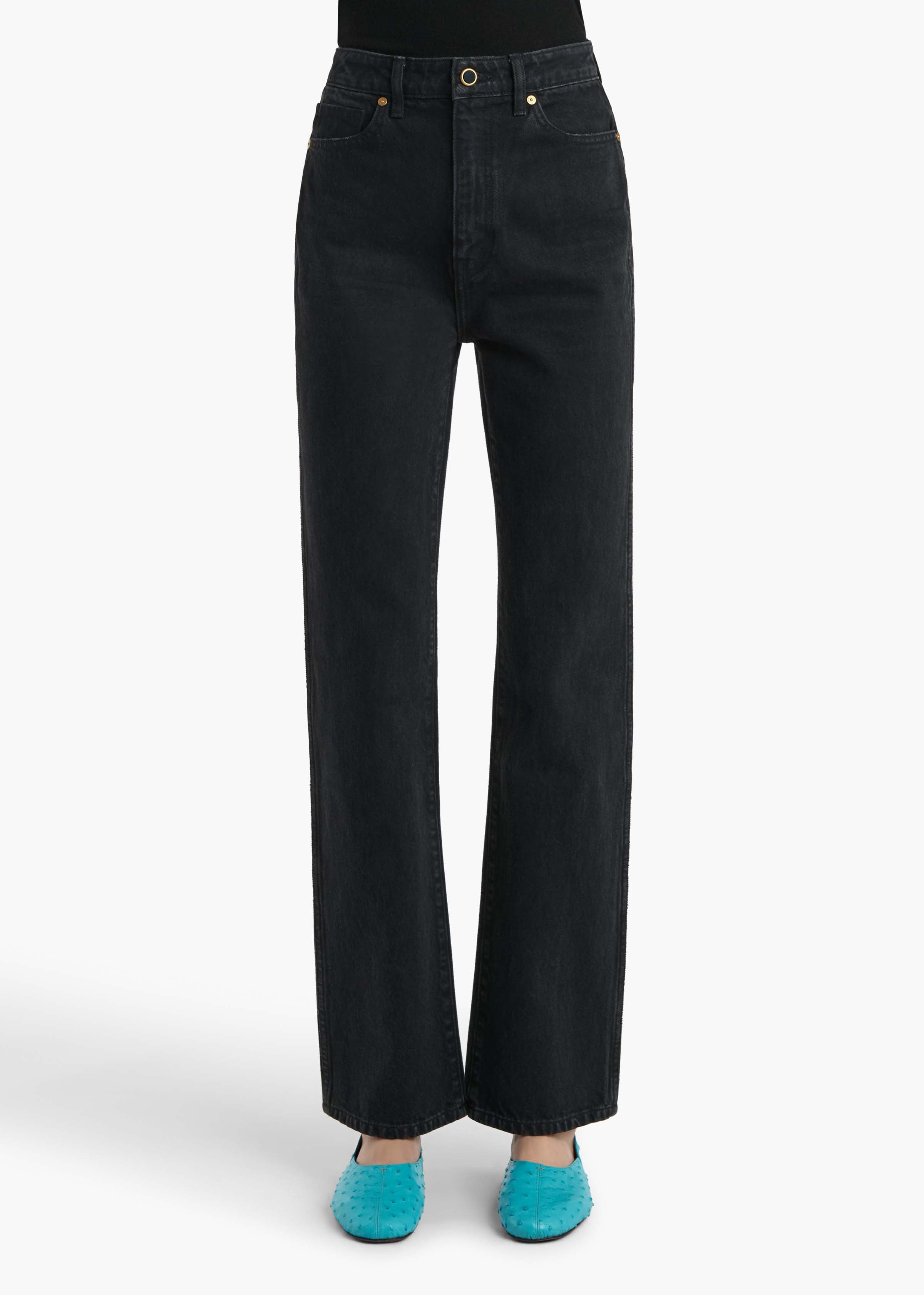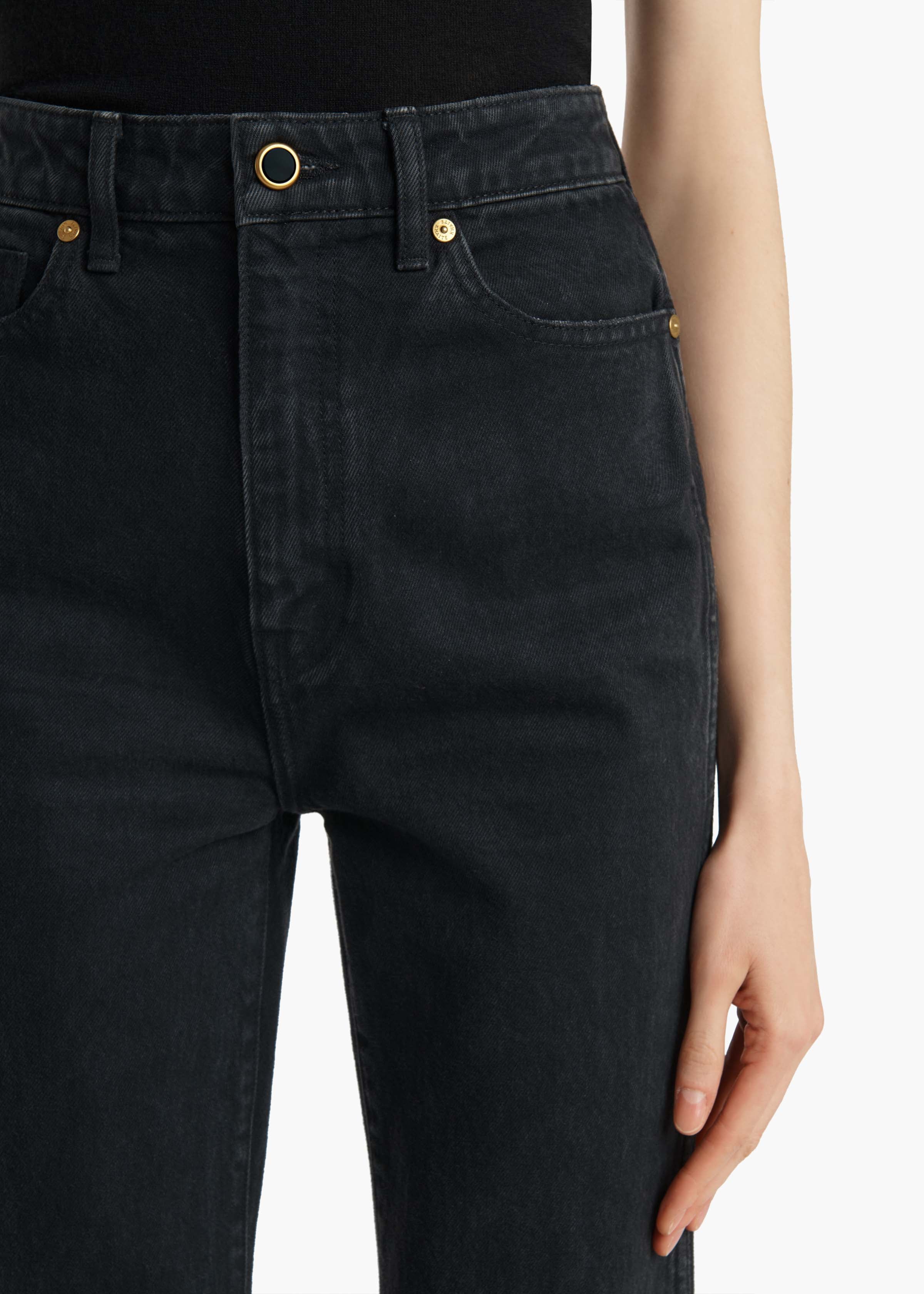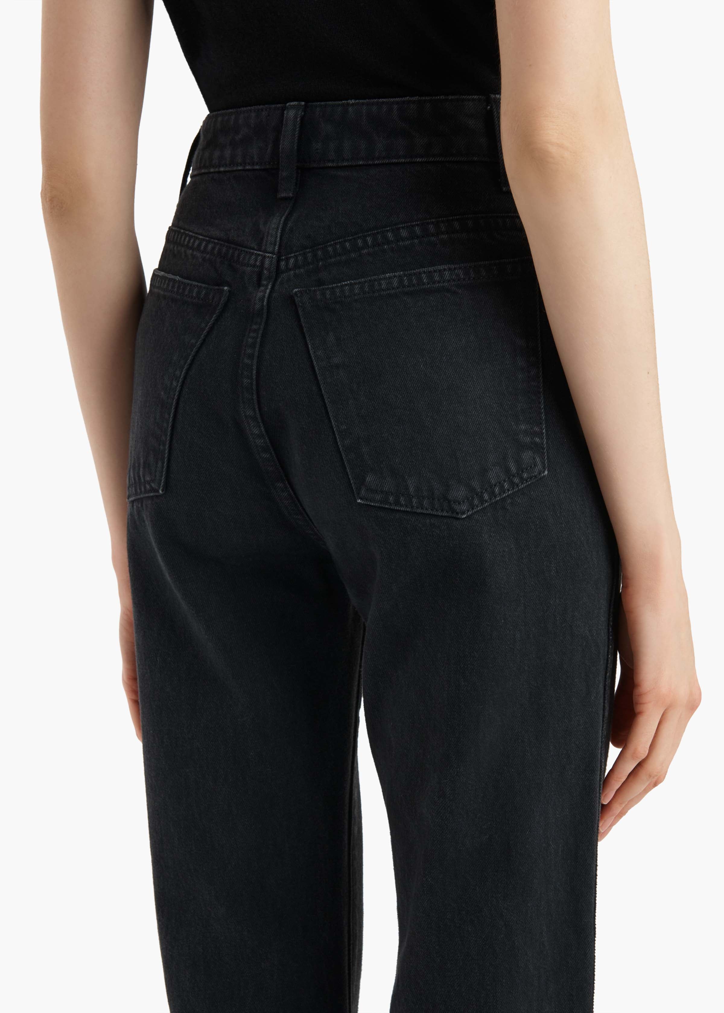 Designed to visually elongate the legs, these high-rise jeans flatter with a stovepipe silhouette and the structure of pure cotton denim. Finished by hand.