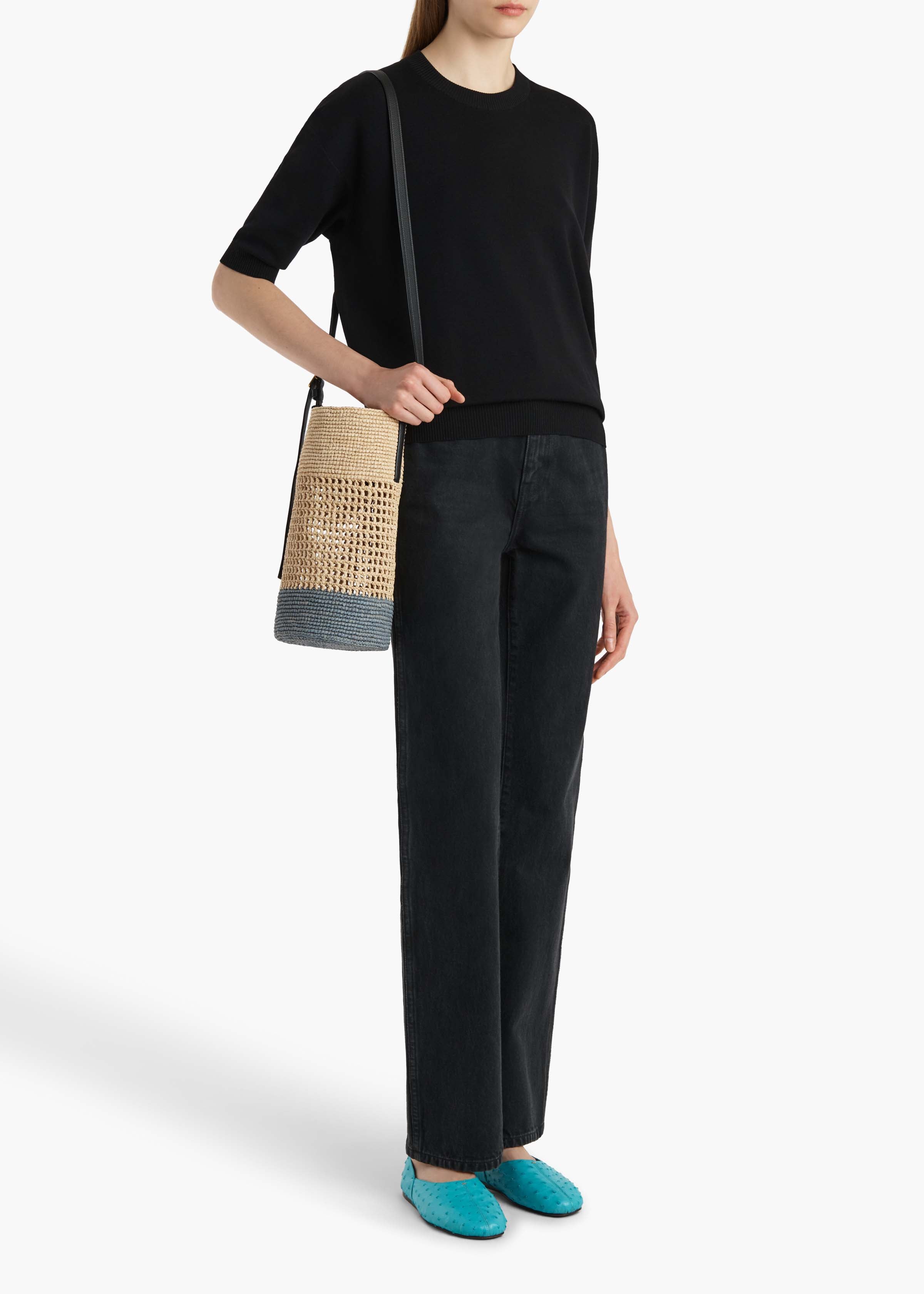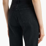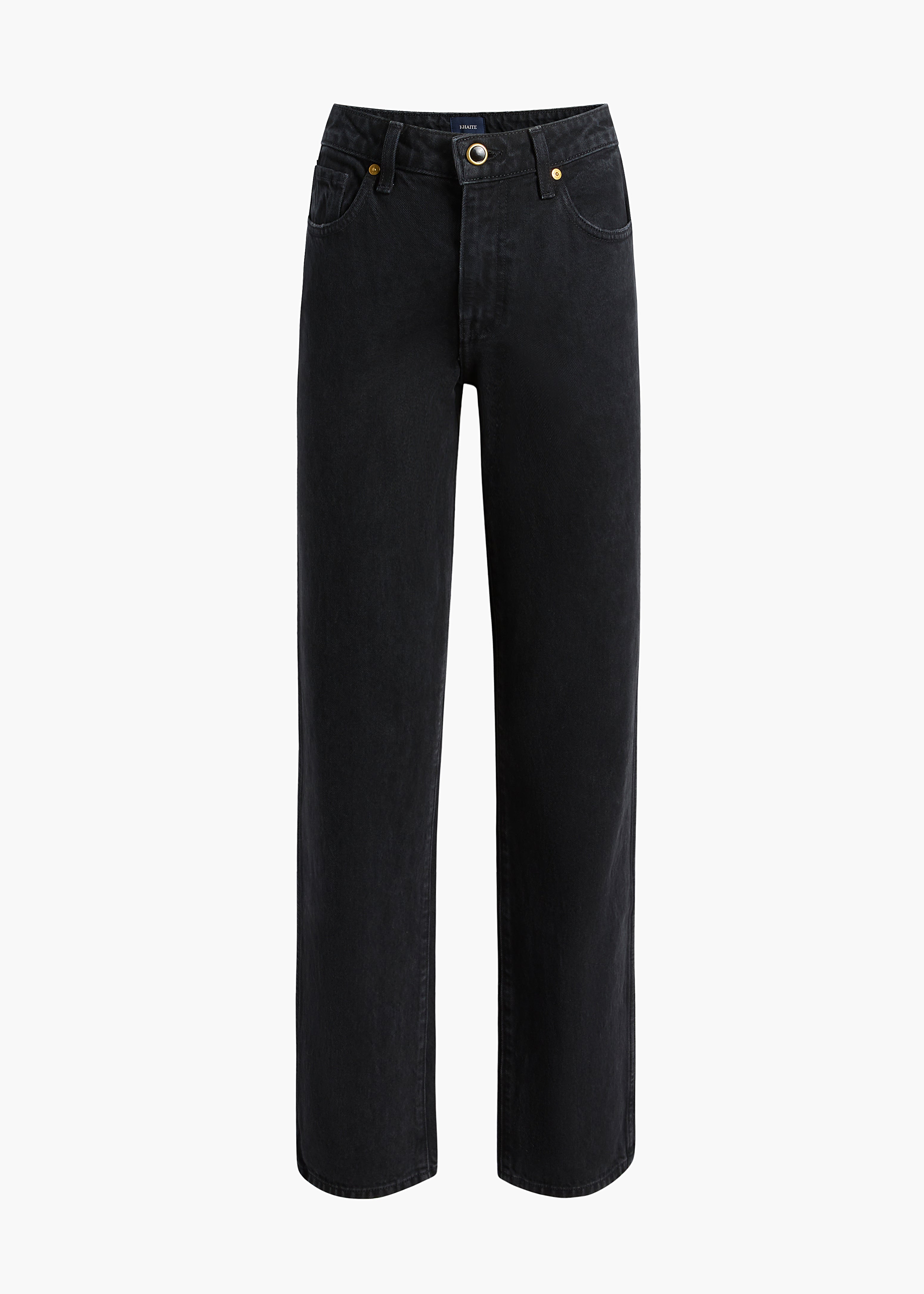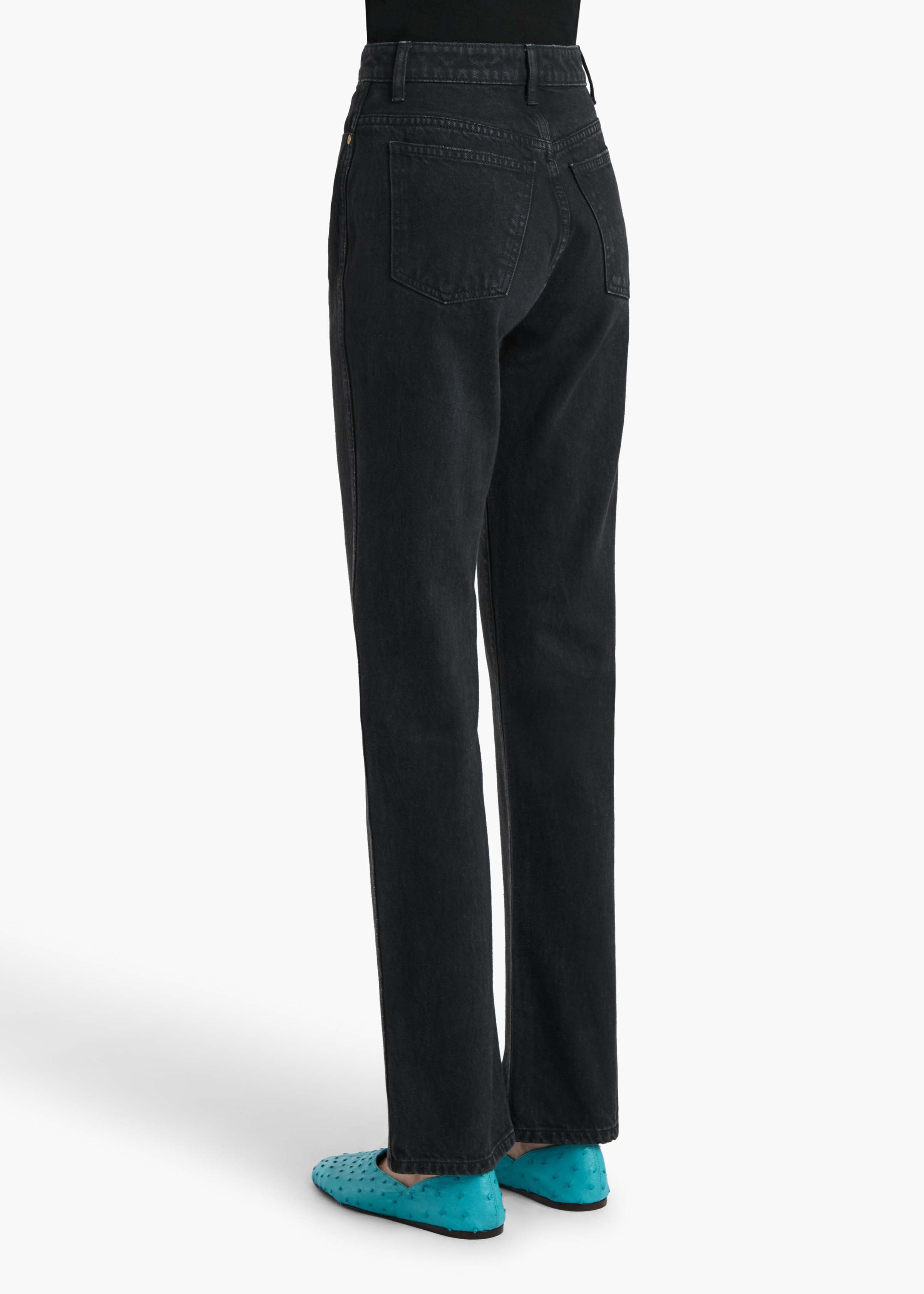 Designed to visually elongate the legs, these high-rise jeans flatter with a stovepipe silhouette and the structure of pure cotton denim. Finished by hand.