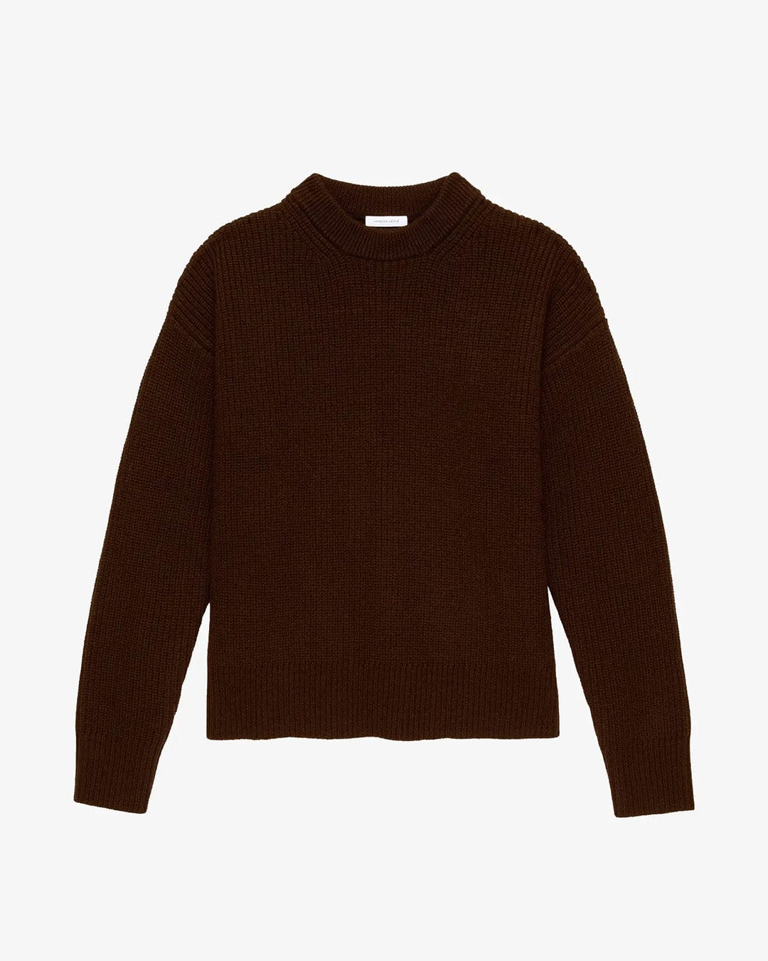 A menswear-inspired classic sweater with a boxy fit. Crafted from a chunky, textured fisherman stitch out of 100% regenerative wool from Shaniko Wool Company, this carbon-negative knit drapes just right.