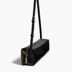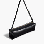 An east-west silhouette in richly textured patent leather. Adjustable shoulder strap positioned on the diagonal. Zippered top with Empire hardware.