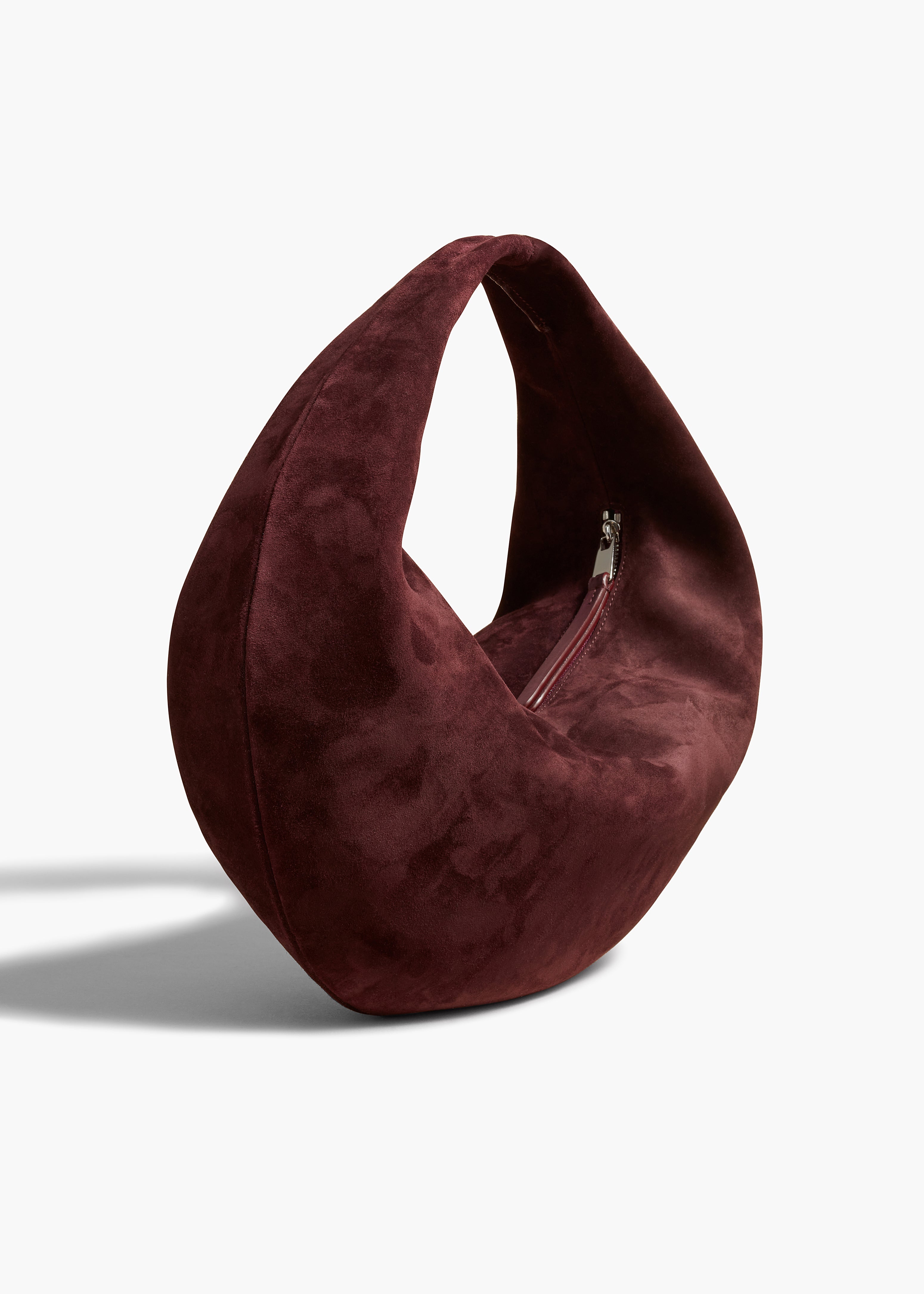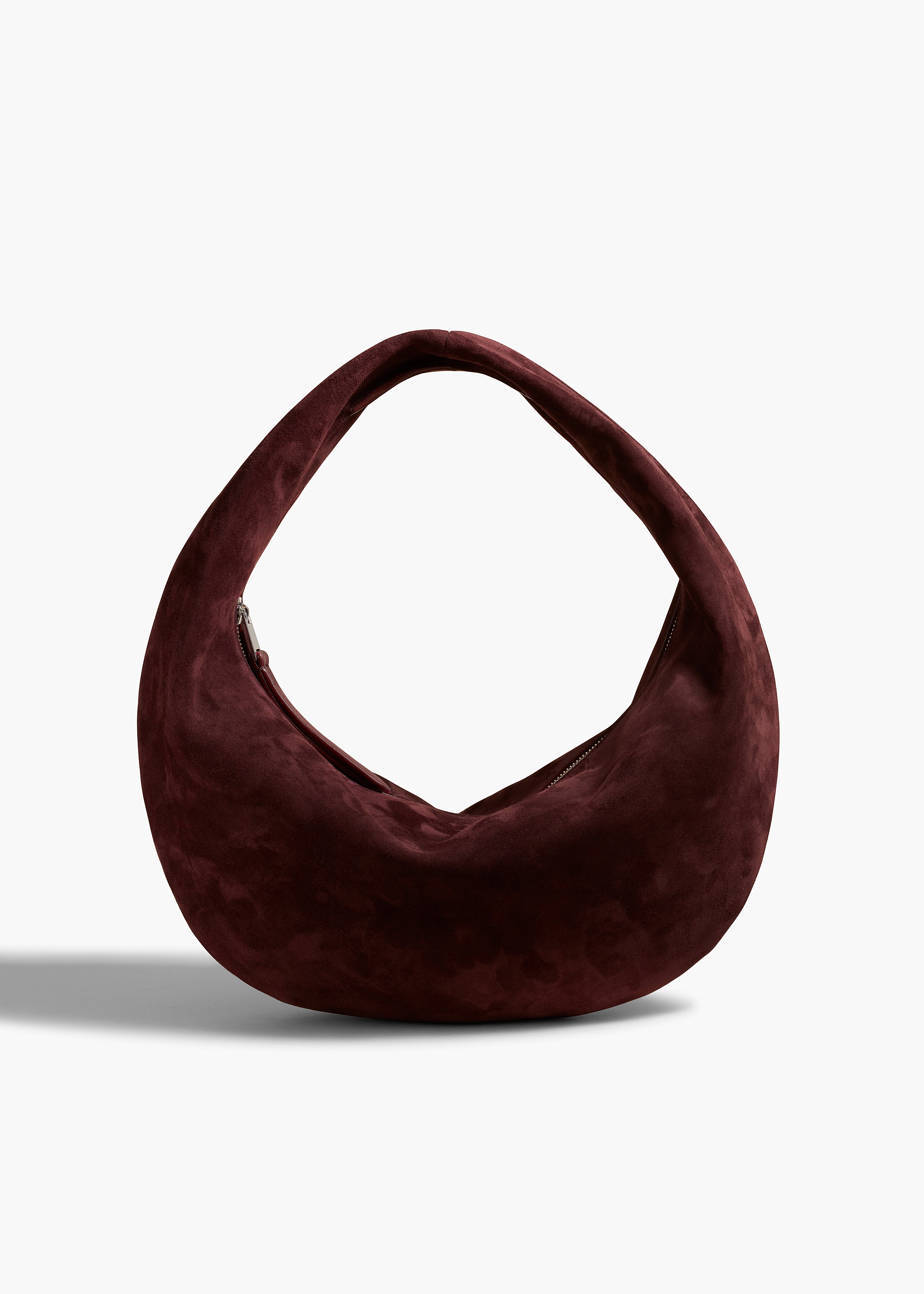 A slouchy zip-top hobo bag crafted in velvety suede. With integrated strap to wear over the shoulder or carry by hand.