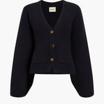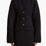 Accented by fisherman's rib-stitched trim, patch pockets, and tortoiseshell buttons, this deep v-neck cardigan envelops the body in mid-weight cashmere selected for its exceptional softness and robust texture. The cropped silhouette is balanced by relaxed, extended sleeves.