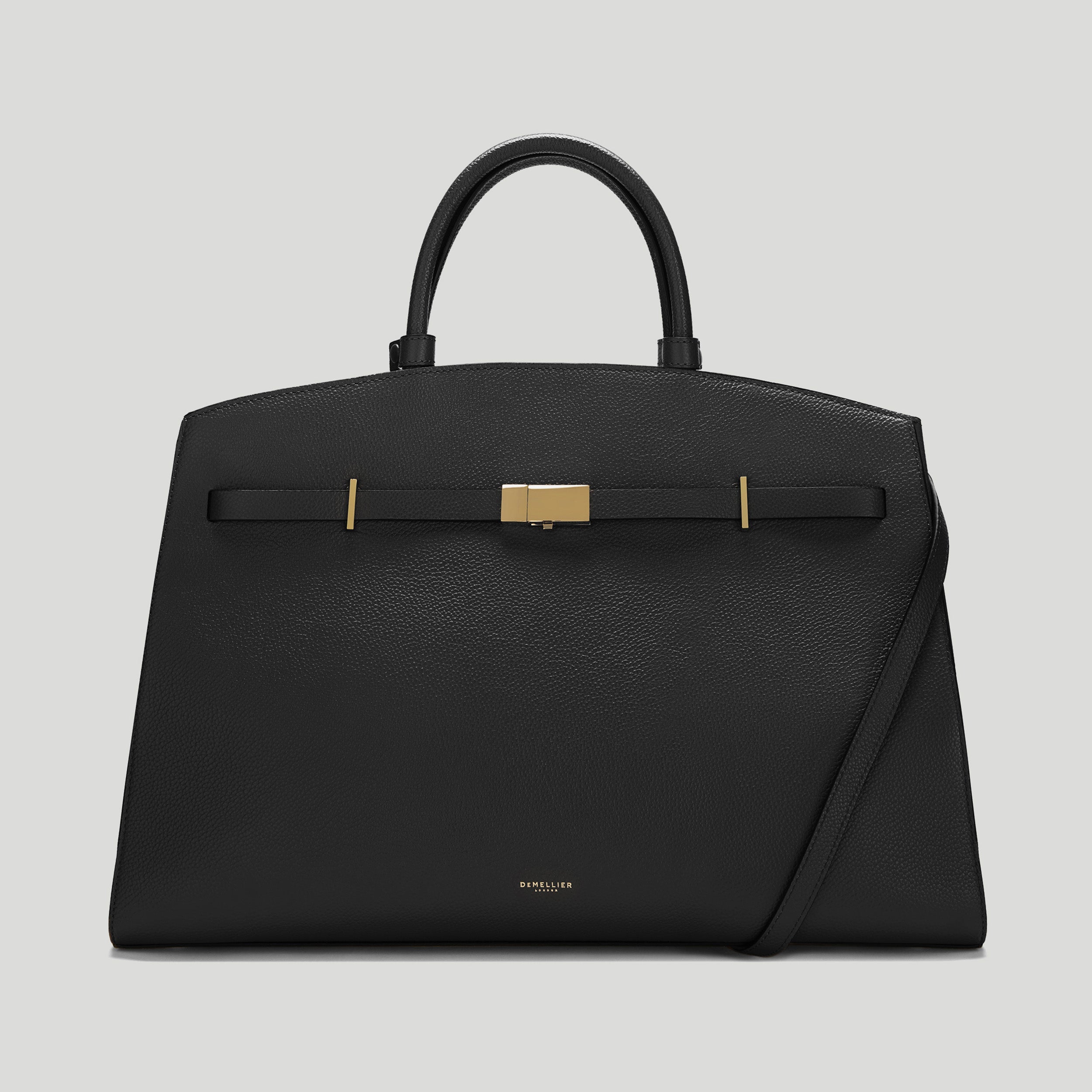 The Hudson is designed to empower, crafted to last. Featuring our signature belted strap and gold-plated lock, it embodies both strength and sophistication. Versatile and spacious, it adapts effortlessly to everyday needs, with expandable side panels that adjust with stud fastenings to provide extra space. Securely closed with a dog clip fastening, it ensures essentials stay safe, while the two leather handle holders keep the top handles neatly together. Complete with a top handle and an adjustable, removable strap for various styling options, this sophisticated day bag can be carried by hand, on the crook of the arm, or as a crossbody. Ethically made from sustainably sourced, LWG gold-rated Italian leather, The Hudson blends timeless style with contemporary refinement.