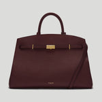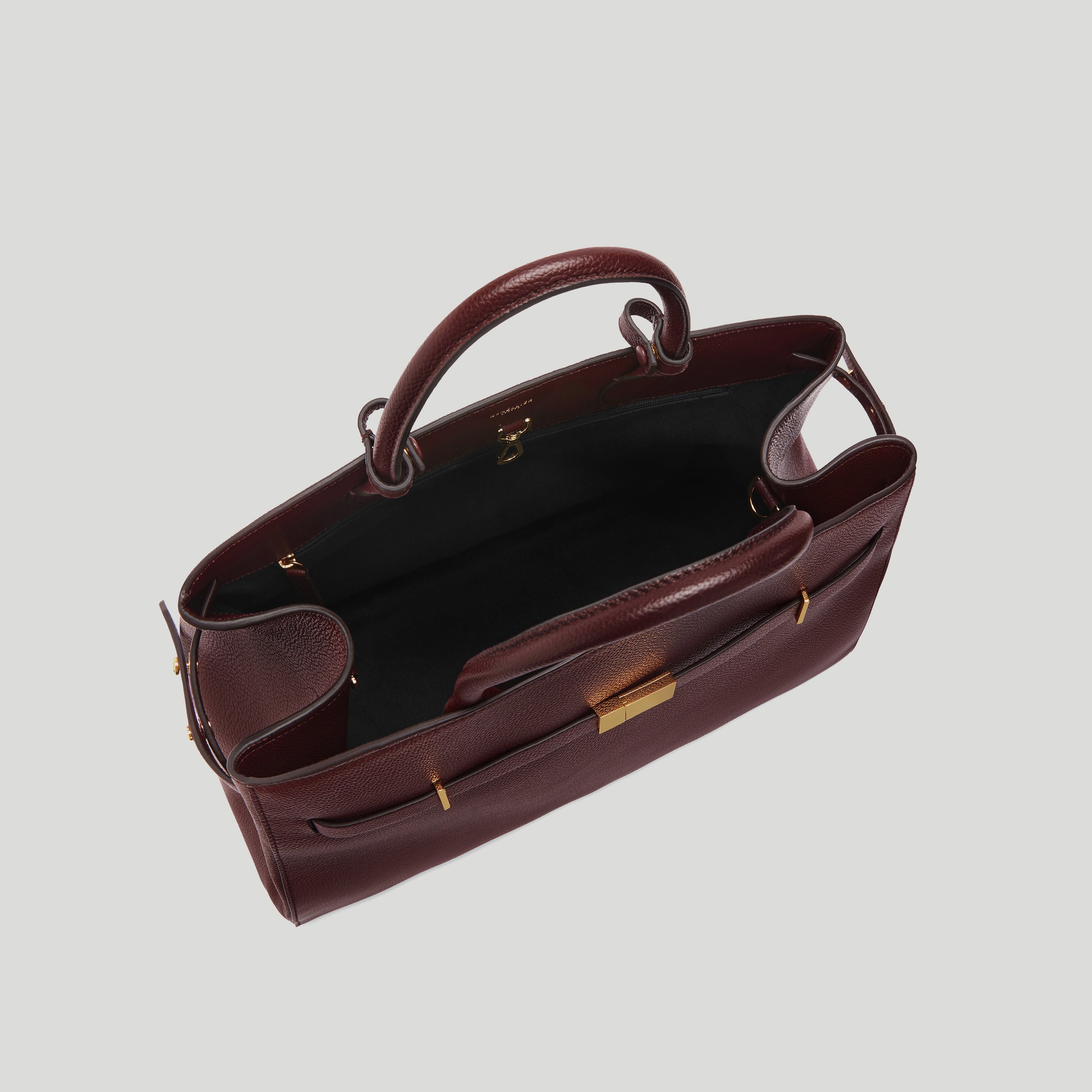 The Hudson is designed to empower, crafted to last. Featuring our signature belted strap and gold-plated lock, it embodies both strength and sophistication. Versatile and spacious, it adapts effortlessly to everyday needs, with expandable side panels that adjust with stud fastenings to provide extra space. Securely closed with a dog clip fastening, it ensures essentials stay safe, while the two leather handle holders keep the top handles neatly together. Complete with a top handle and an adjustable, removable strap for various styling options, this sophisticated day bag can be carried by hand, on the crook of the arm, or as a crossbody. Ethically made from sustainably sourced, LWG gold-rated Italian leather, The Hudson blends timeless style with contemporary refinement.