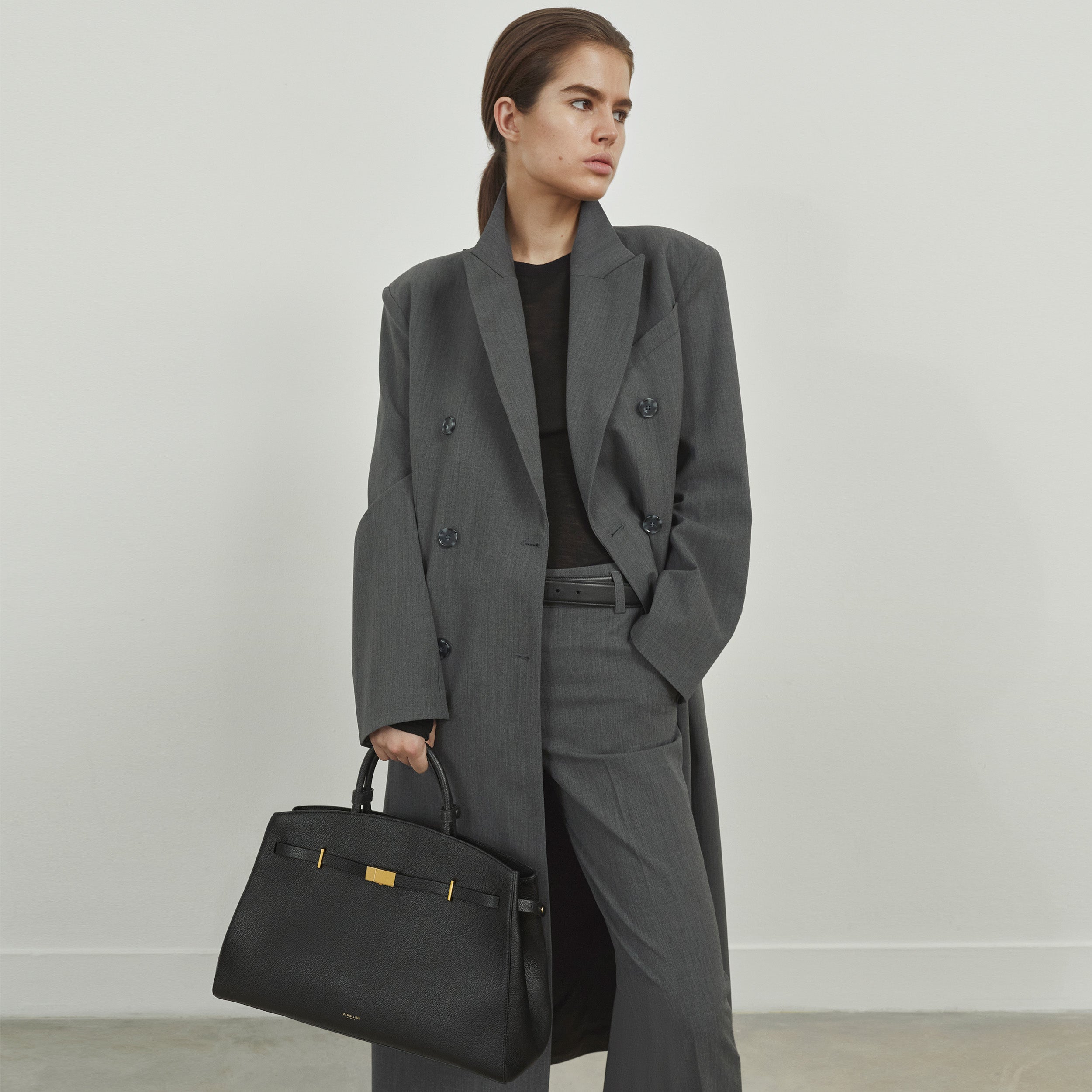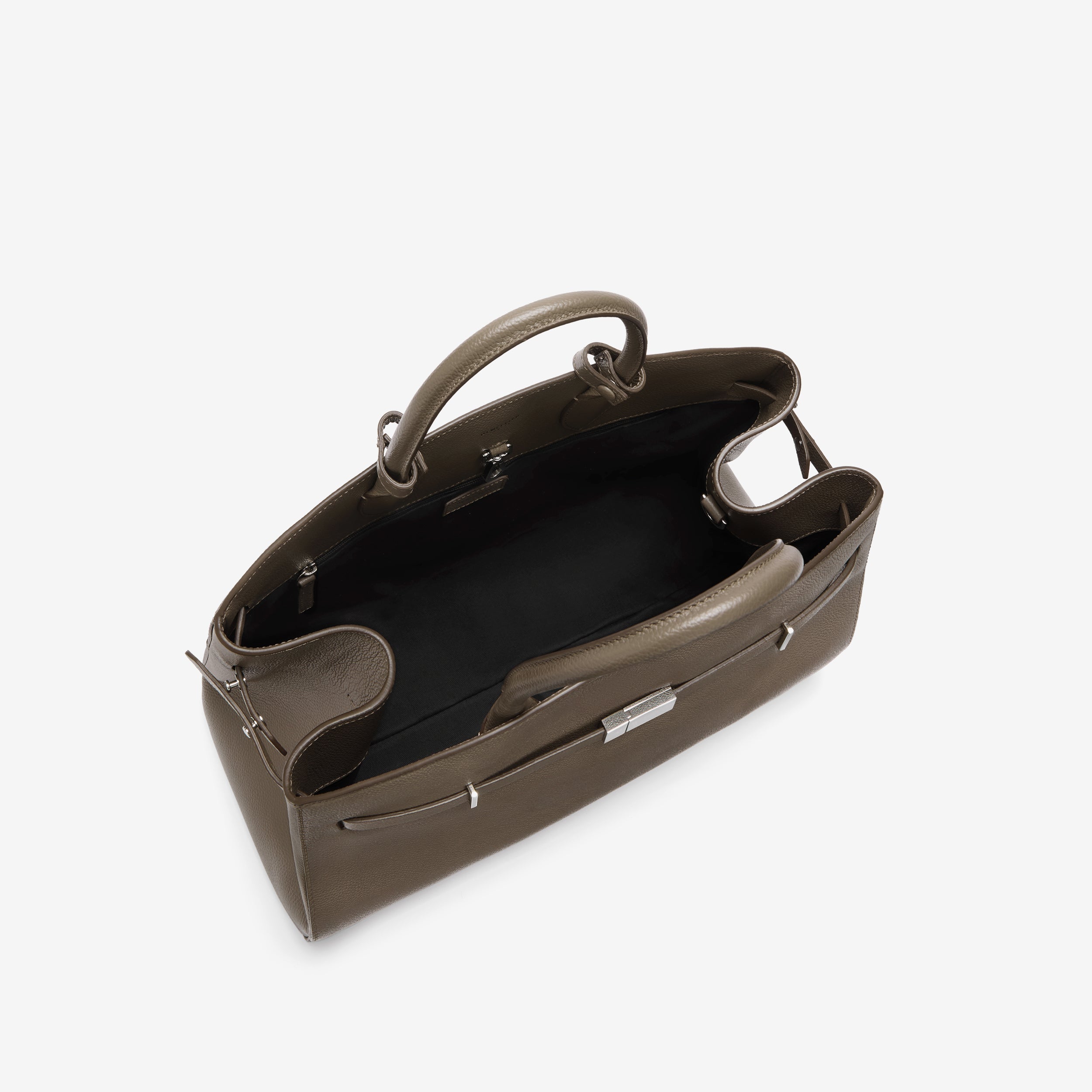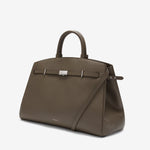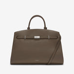 The Hudson is designed to empower, crafted to last. Featuring our signature belted strap and gold-plated lock, it embodies both strength and sophistication. Versatile and spacious, it adapts effortlessly to everyday needs, with expandable side panels that adjust with stud fastenings to provide extra space. Securely closed with a dog clip fastening, it ensures essentials stay safe, while the two leather handle holders keep the top handles neatly together. Complete with a top handle and an adjustable, removable strap for various styling options, this sophisticated day bag can be carried by hand, on the crook of the arm, or as a crossbody. Ethically made from sustainably sourced, LWG gold-rated Italian leather, The Hudson blends timeless style with contemporary refinement.