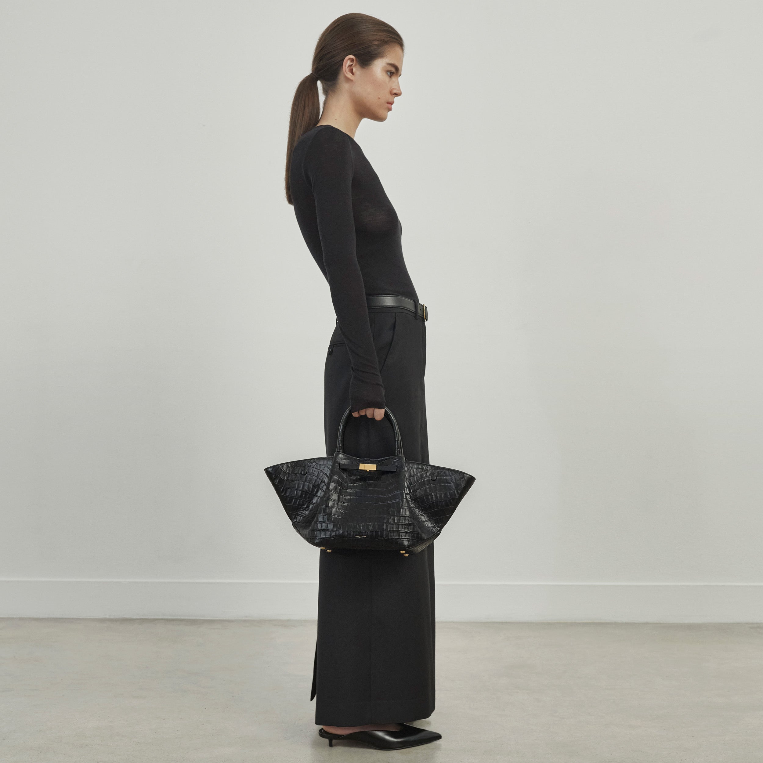 The Midi New York was inspired by our love for this amazing city, its energy, architecture and people. Its modern yet timeless silhouette and subtle luxury finish makes it the perfect day bag. The interior can be safely closed off with a central internal magnet. The comfortable tubular handles sit nicely in the crook of your elbow or can be held by hand. The base is constructed with triangular folds on each side and enhanced with metal feet. This bag is the perfect size to carry all essentials.
