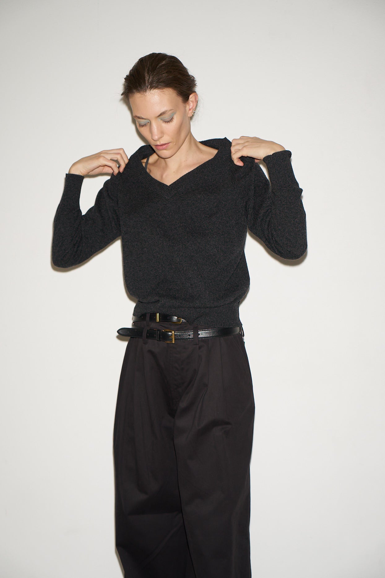 Jamie Haller - The V Fave Cashmere Sweater in Charcoal