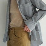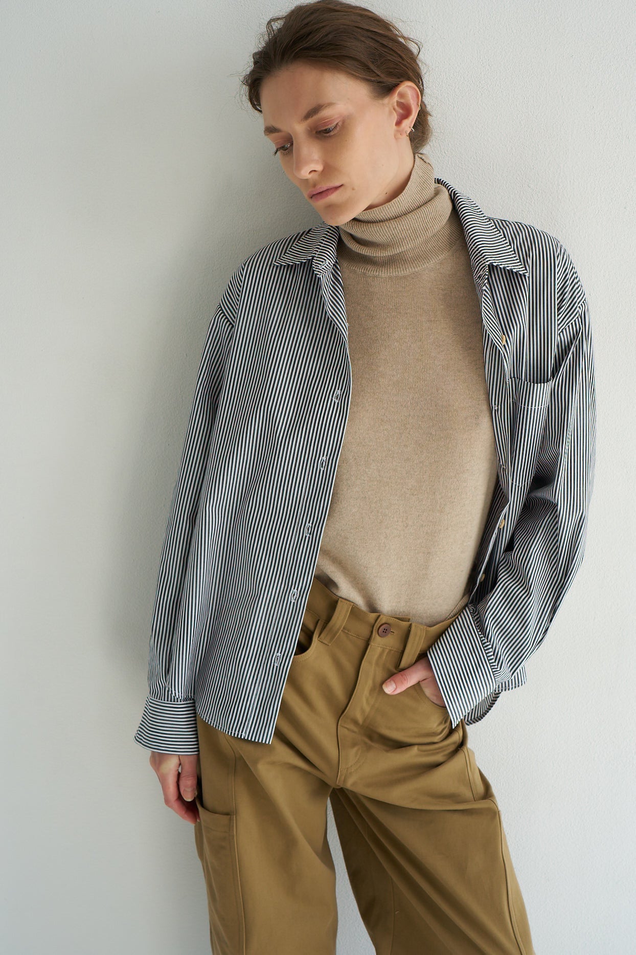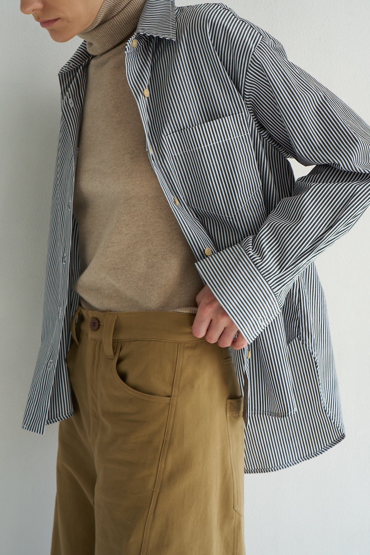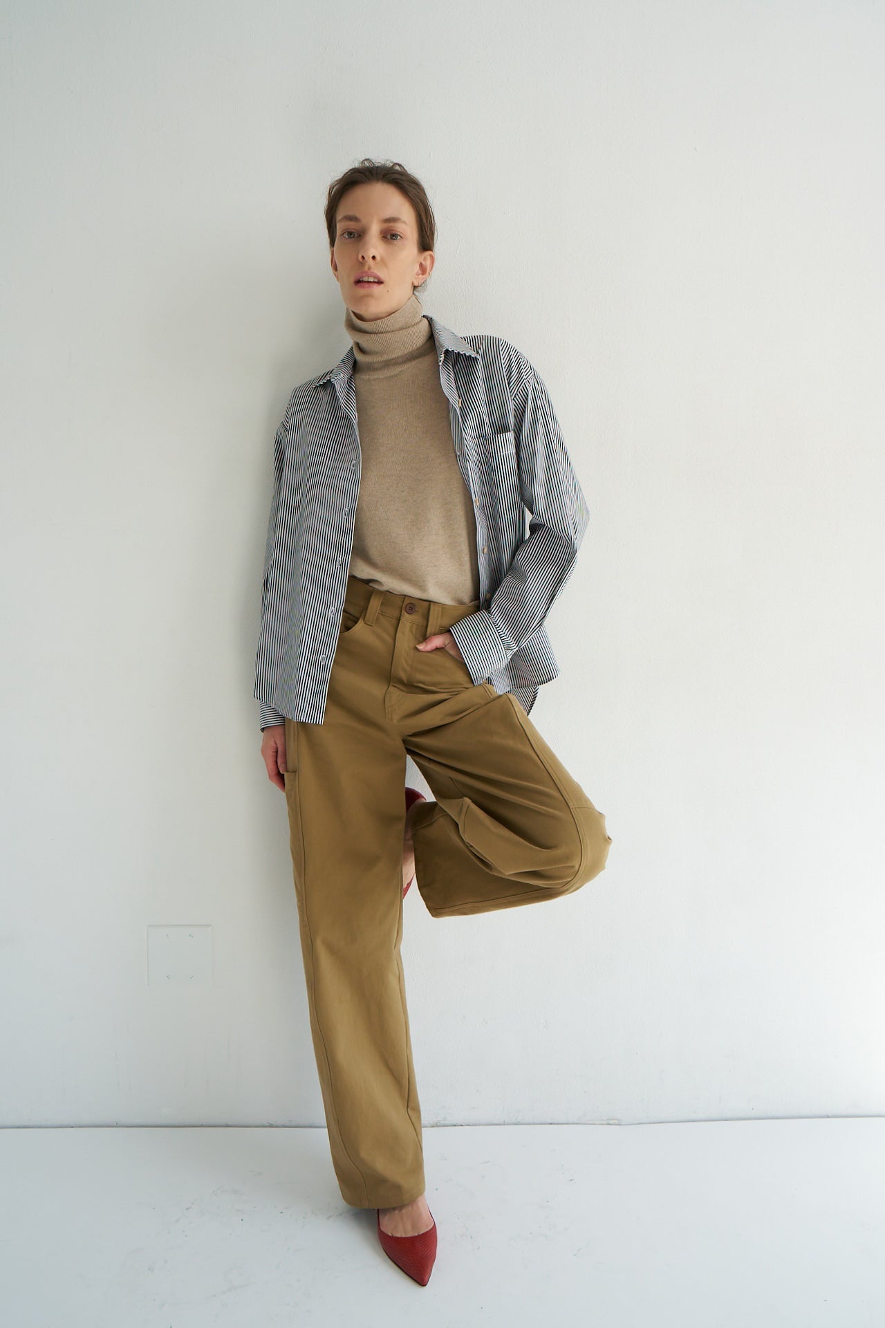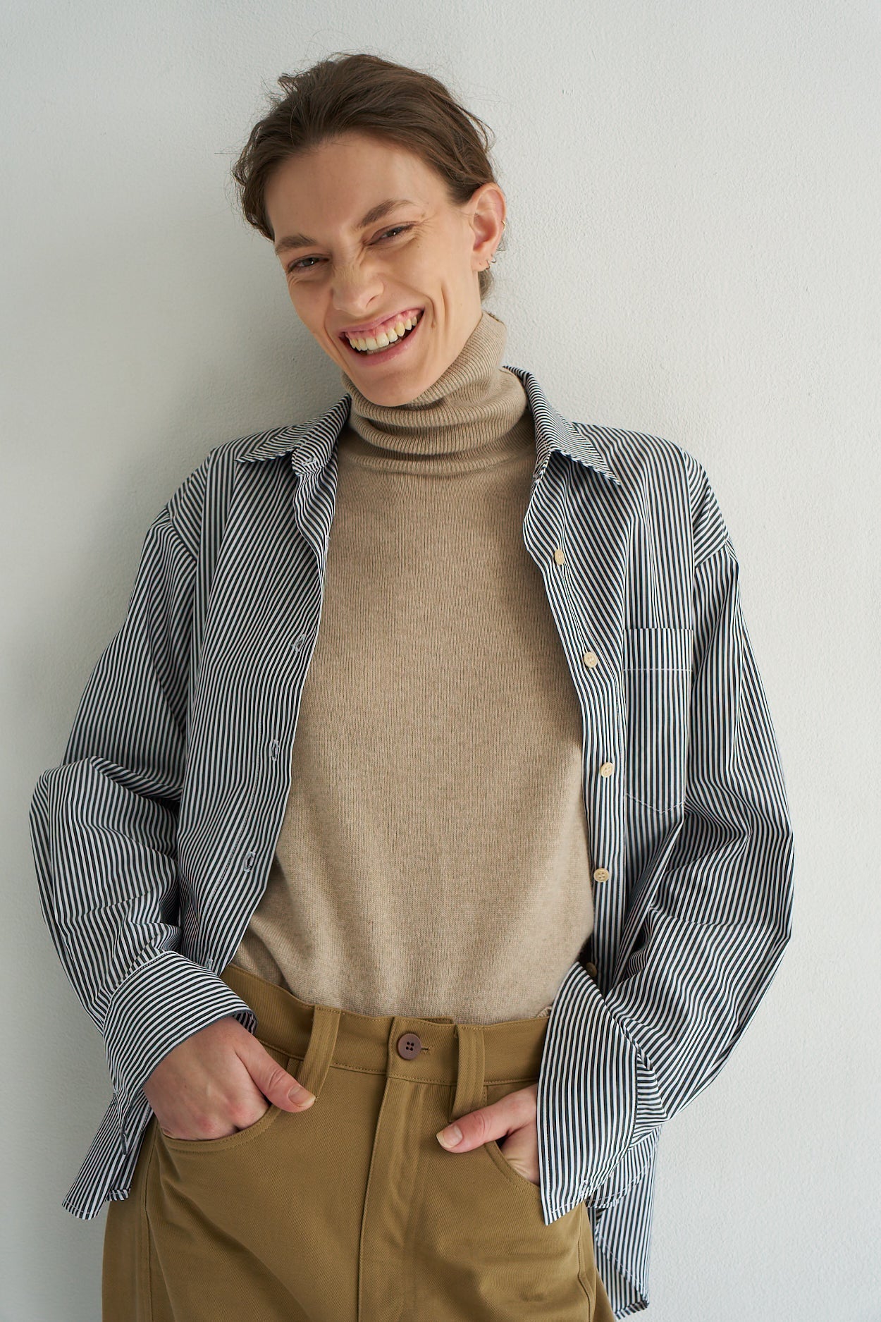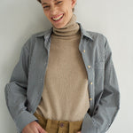 A shirt after my own heart, based on a shirt from my husband’s closet, a men’s style staple I steal over and over. Nothing revolutionary except our lovely casual cut in crisp quality Japanese poplin.  A shirt with width enough to billow open when buttoned down to that perfect place on the breastbone. Fit loose for an effortless appeal but tailored with structured enough to look pulled together.