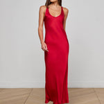 Minimal, elegant, and flattering, the Akiya dress is an all-season essential. Lustrous, bias-cut satin drapes beautifully over the figure. Now back in a bold red.