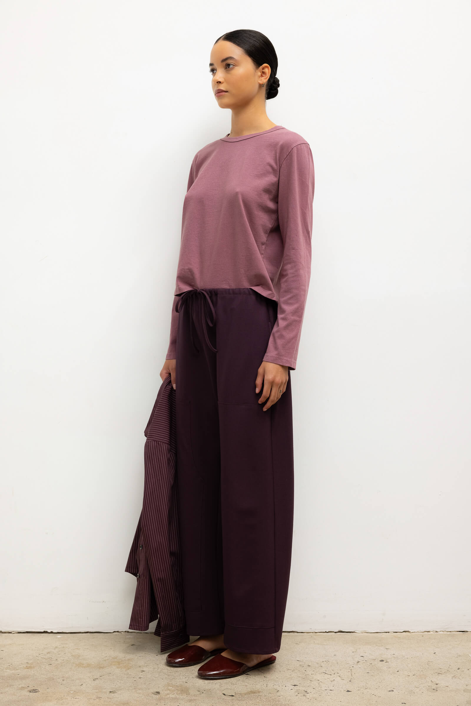 Cut in our RWS certified Jane Stretch Wool, The Jane Carpenter Pant is a pull-on style trouser, featuring a baggy leg silhouette that hits at the ankle, topstitched utility panels, and an adjustable drawstring waistband. Make it a matching set with The Jane Double Breasted Trench.