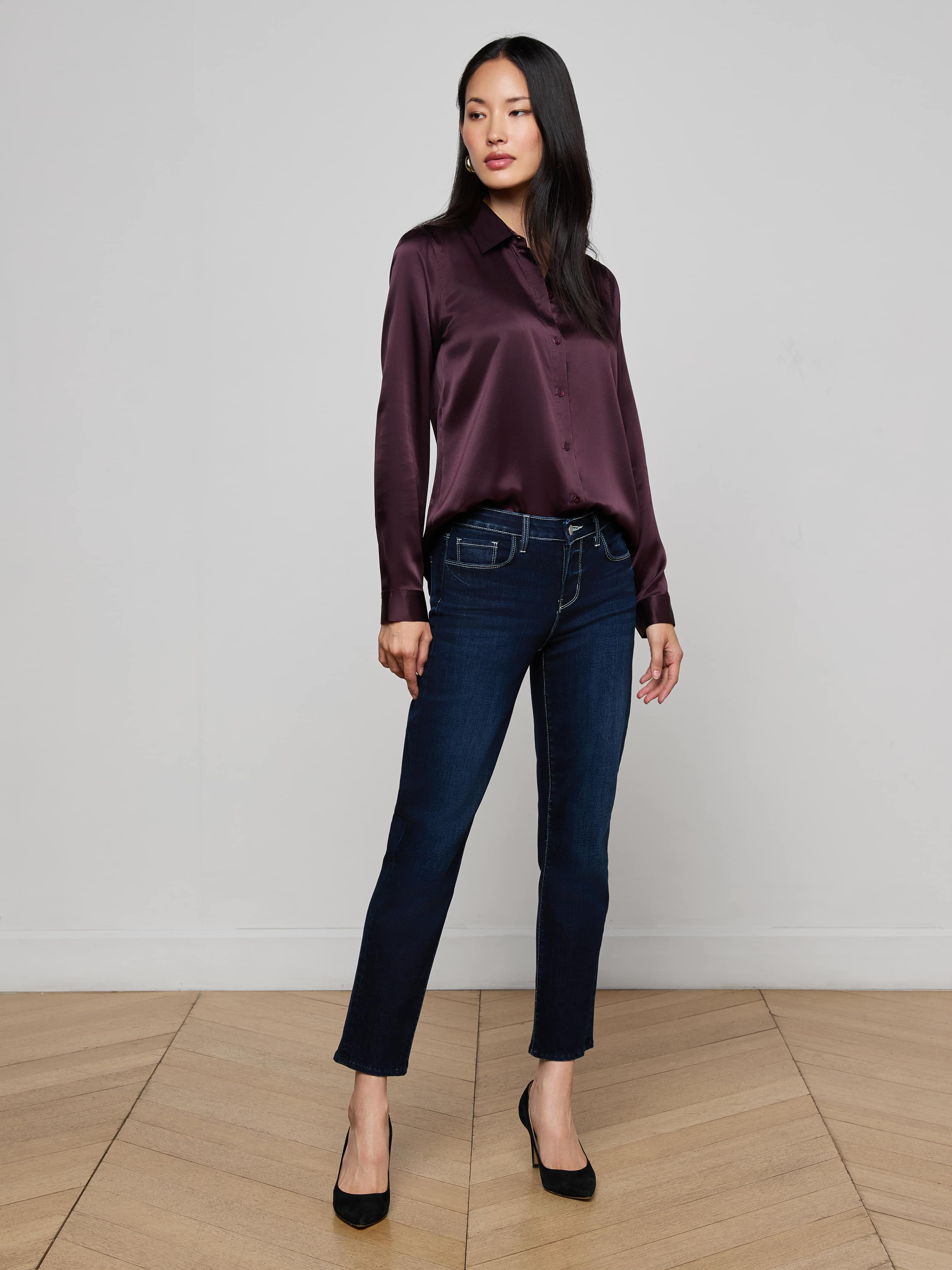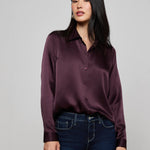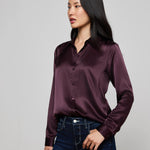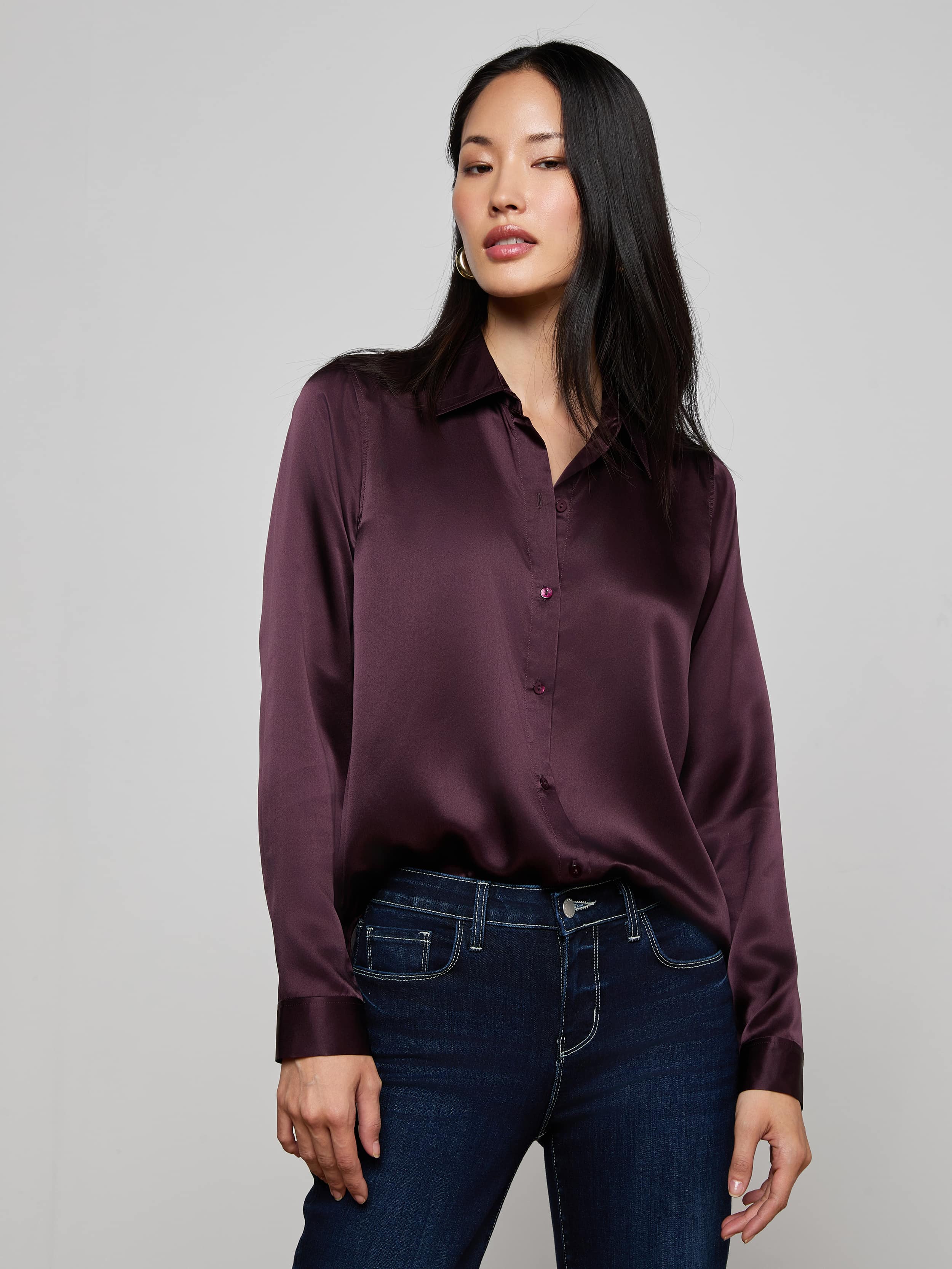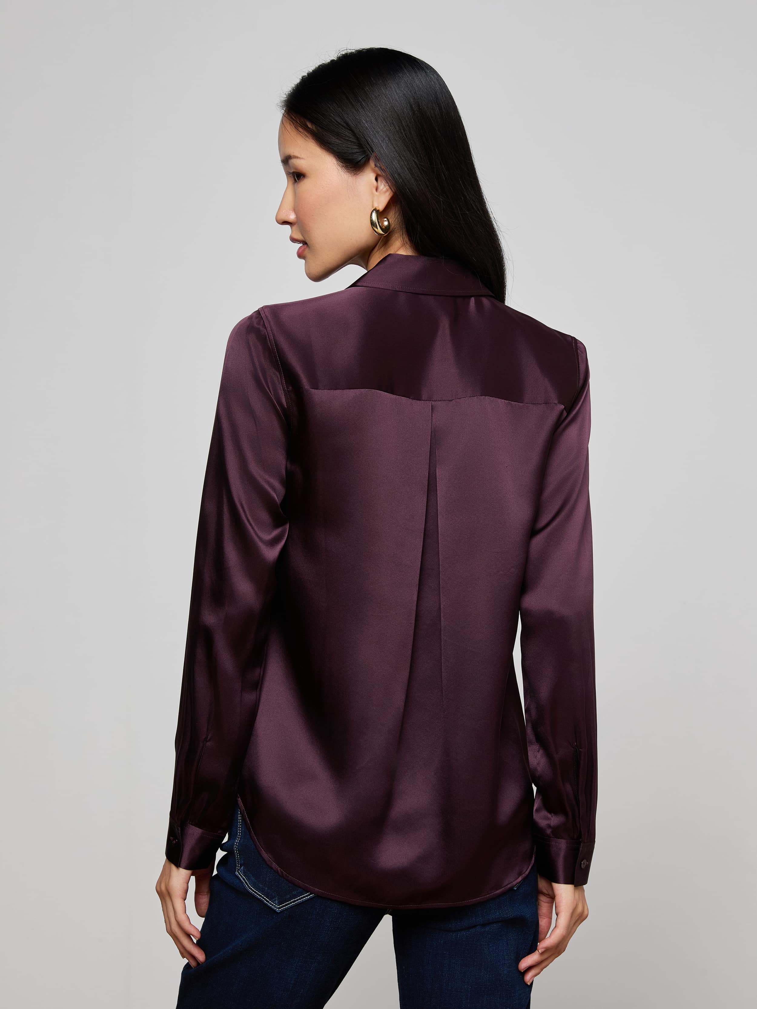 Meet the iconic long-sleeve silk button-down that belongs in every wardrobe. This L'AGENCE bestseller is now back in dark malbec.